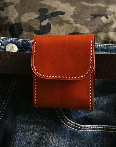 Design: Cool Brown Leather Mens Cigarette Case Cigarette Holder Belt Pouch with Belt Loop for Men