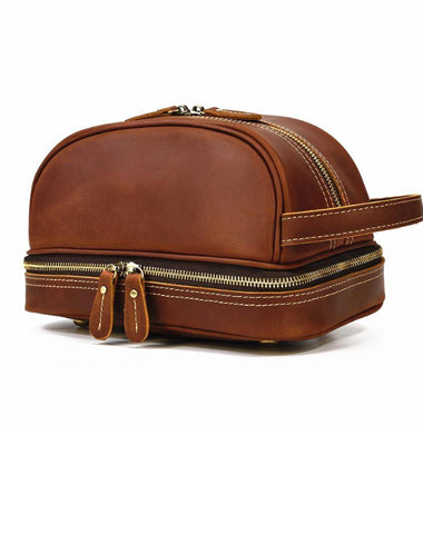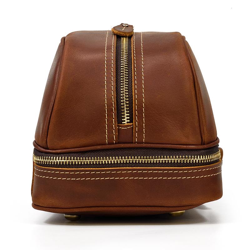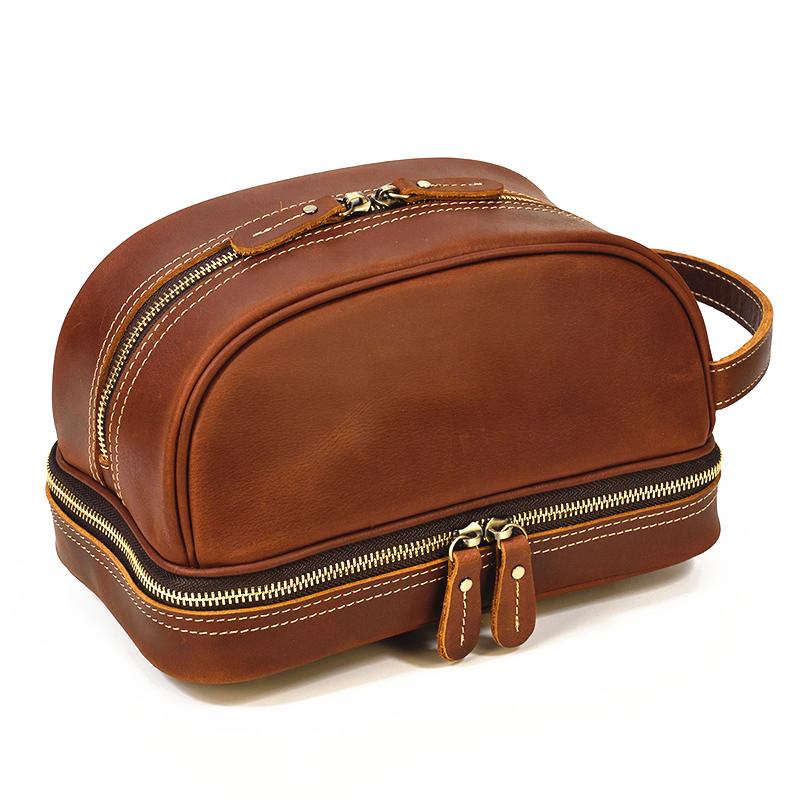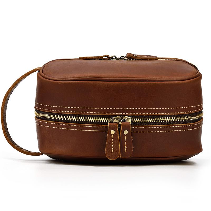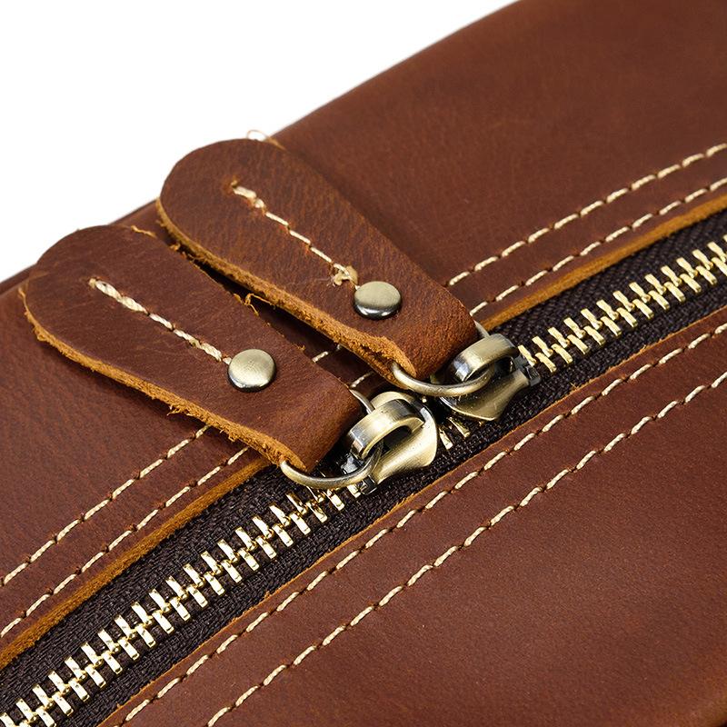 Design: Brown Leather Men's Clutch Bag Double Zipped Wristlet Handbag Storage Bag For Men