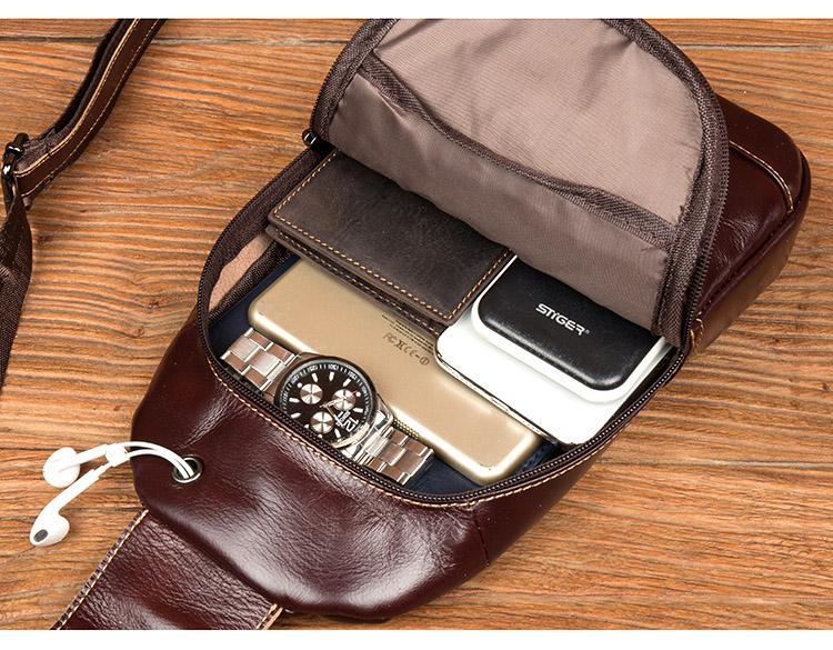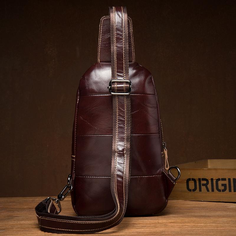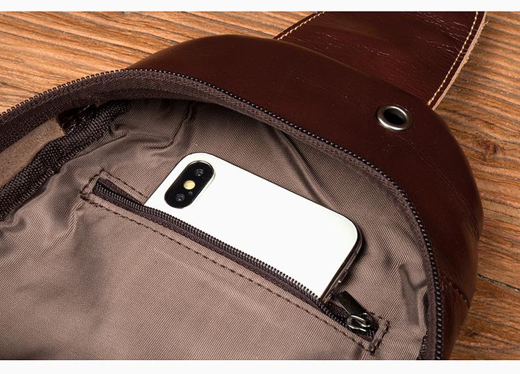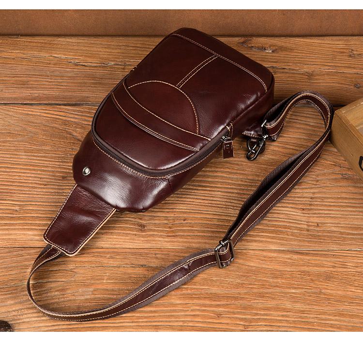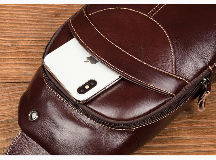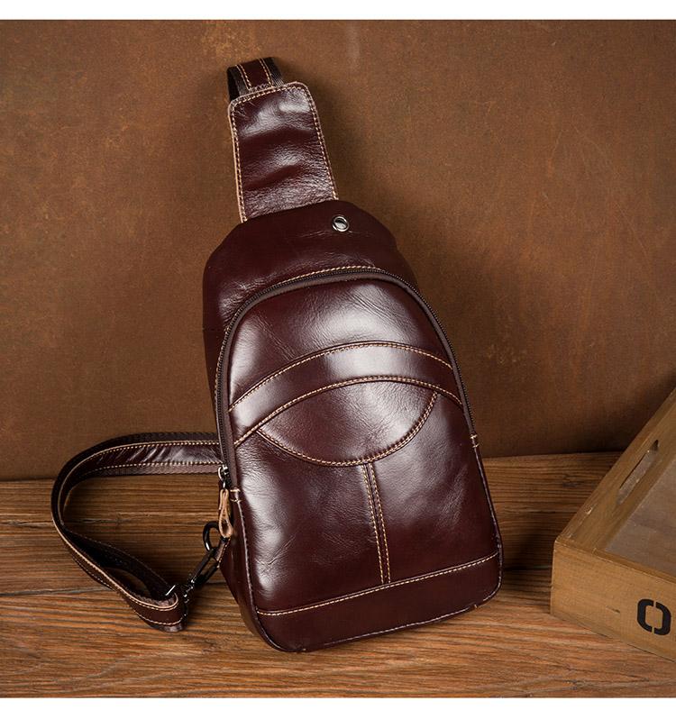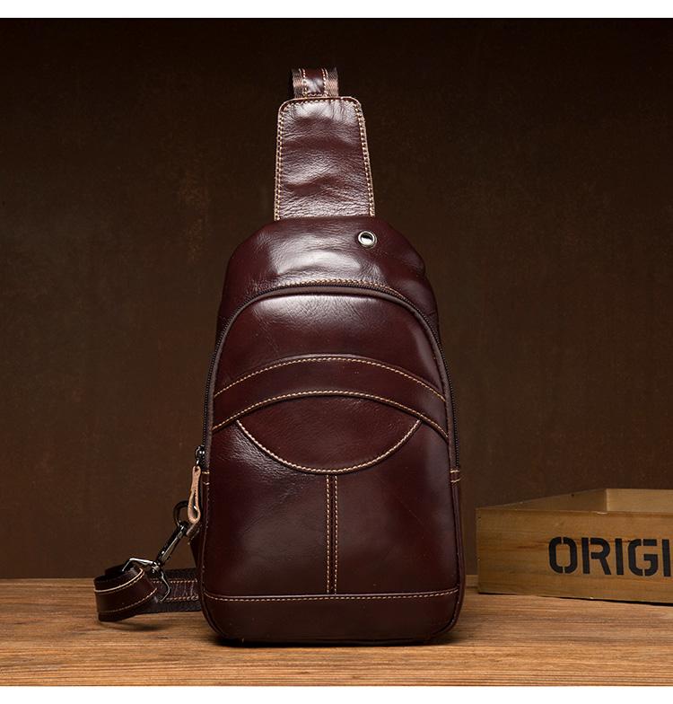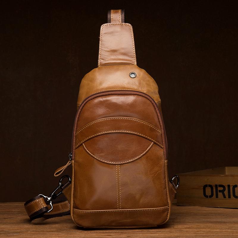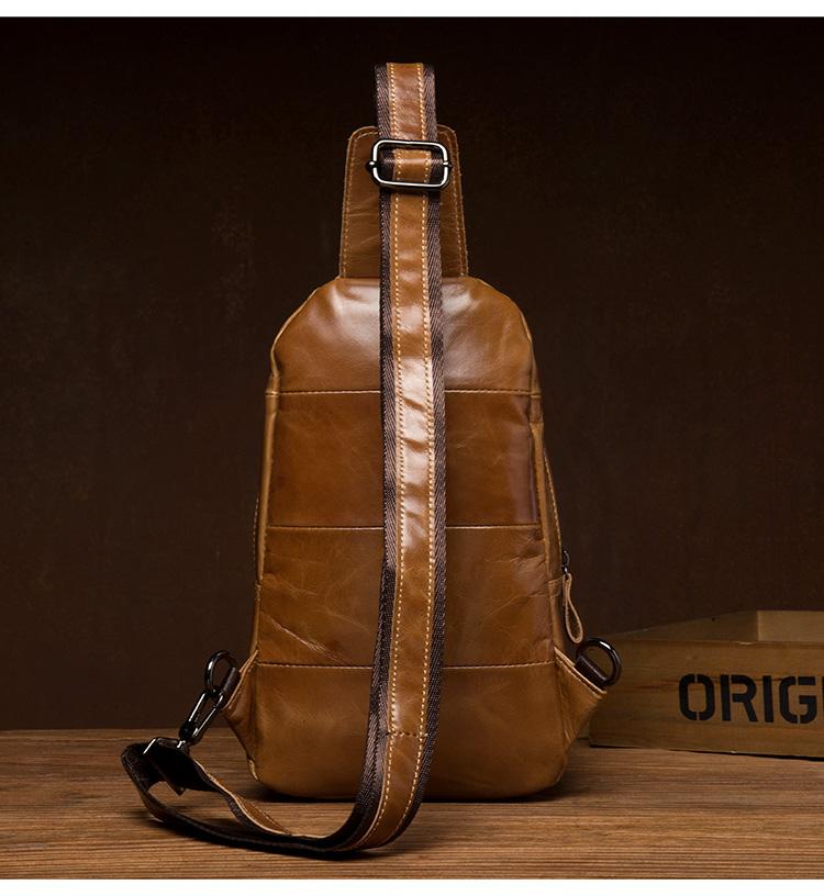Style: Brown Leather Mens Cool Sling Bags Yellow Brown Crossbody Bag Chest Bag for menest Bag for men