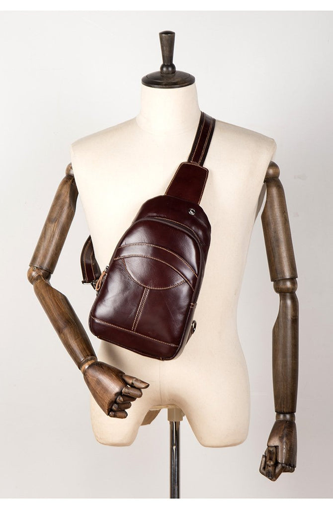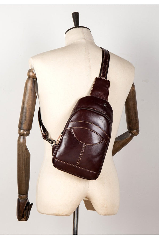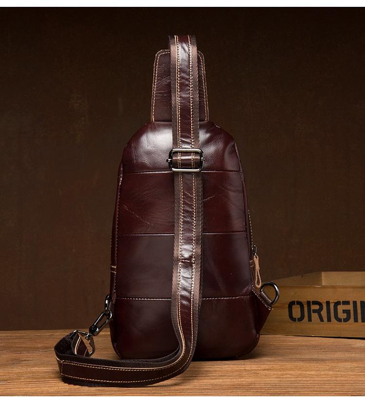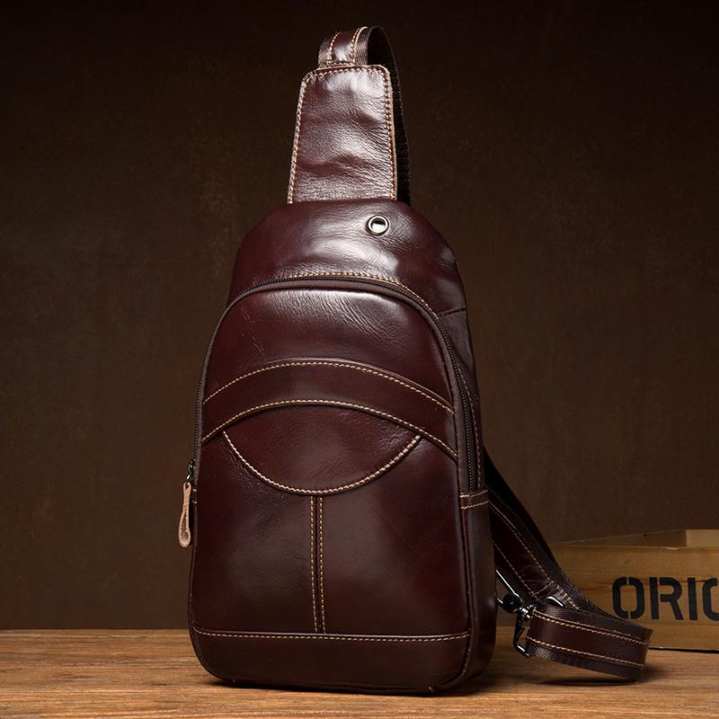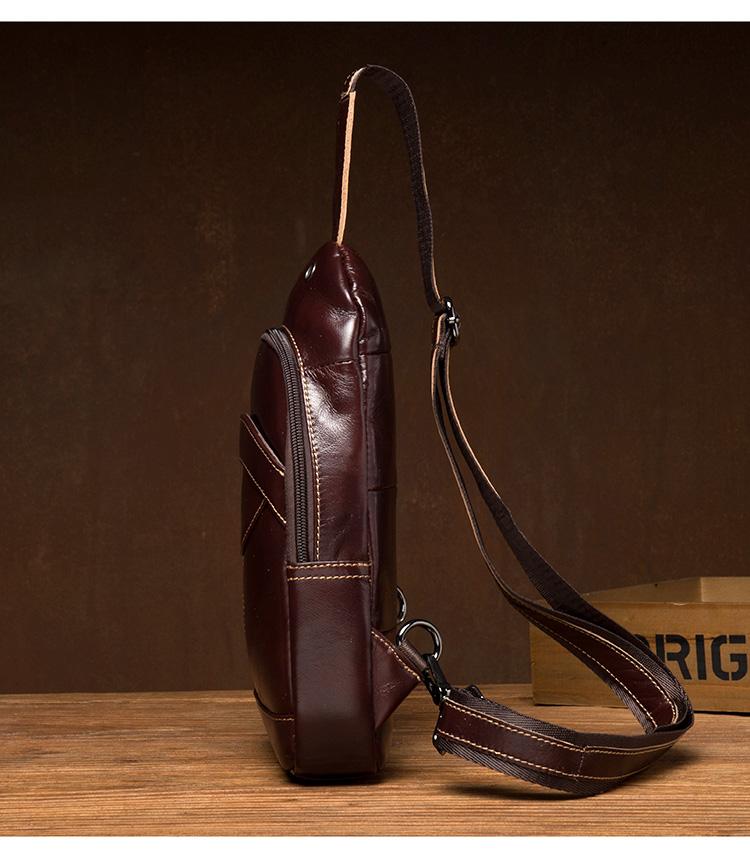 Design: Brown Leather Mens Cool Sling Bags Yellow Brown Crossbody Bag Chest Bag for menest Bag for menst Bag for men