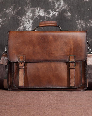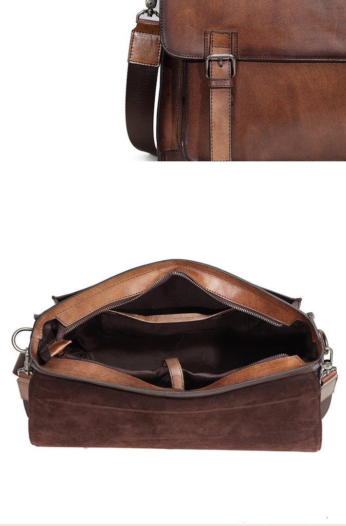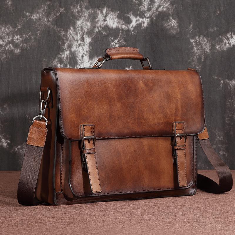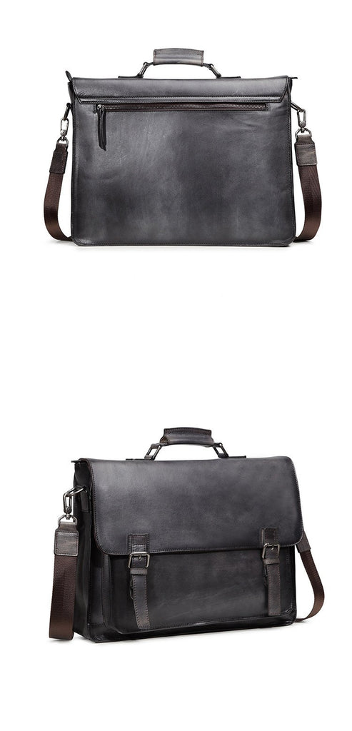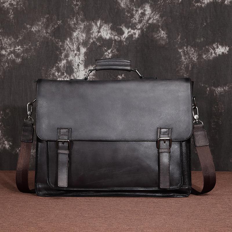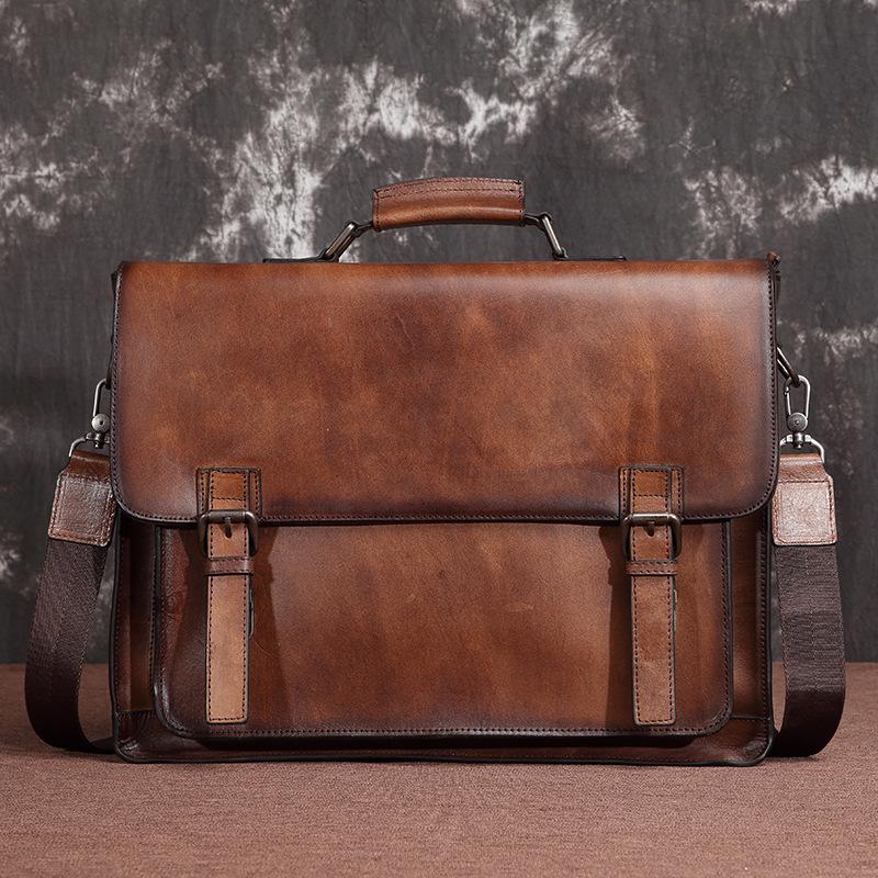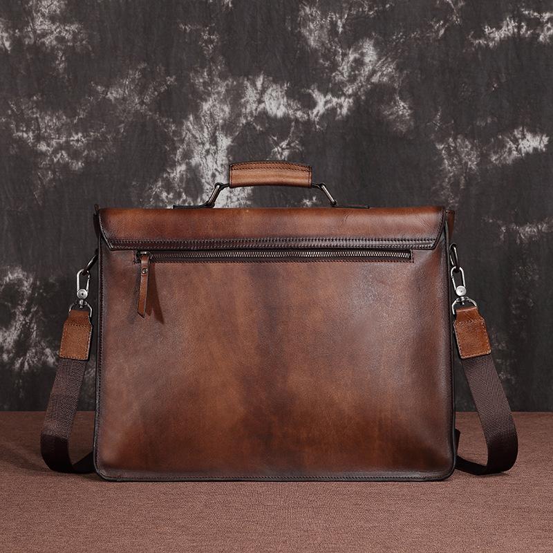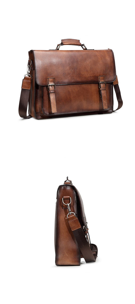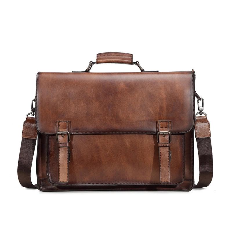 Design: Brown Leather Men's Professional Briefcase 14‘’ Laptop Handbag Black Business Bag Messenger Bag For MenOverview: