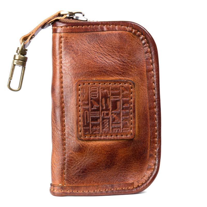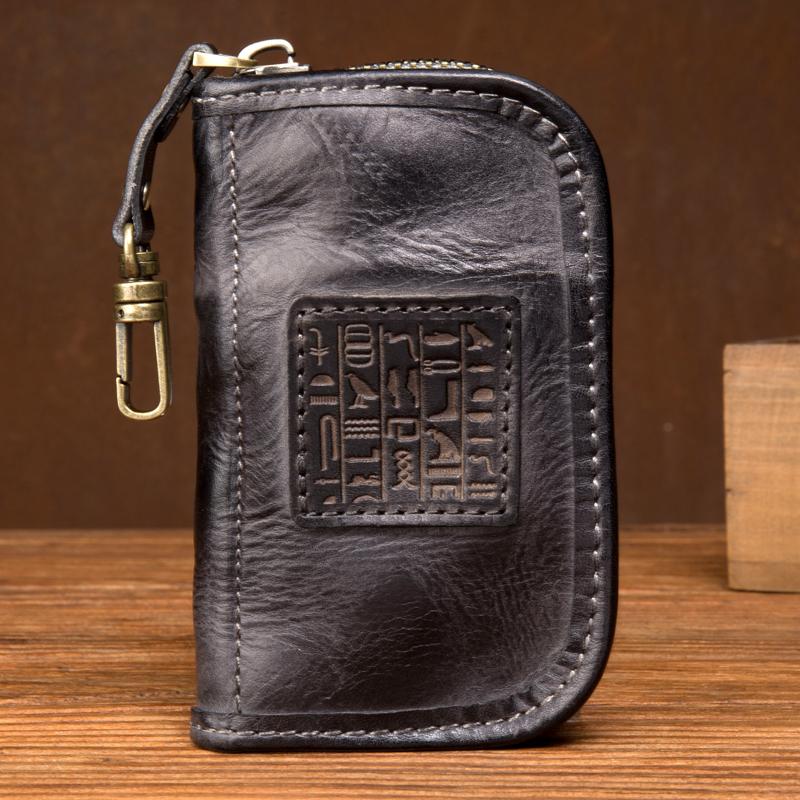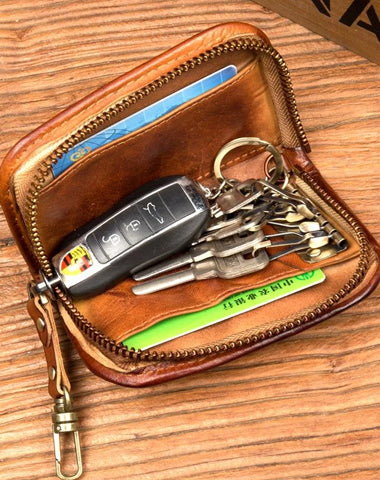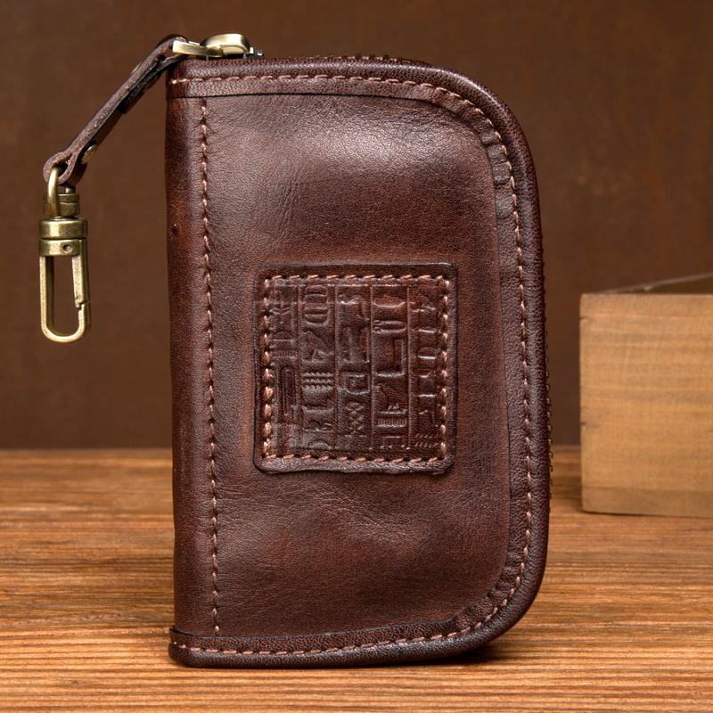 Design: Brown Leather Mens Small Car Key Wallet Dark Brown Key Holder Coin Purse Brown Card Holder For Men