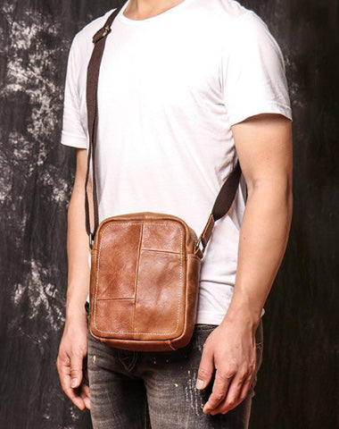 Design: Brown Leather Messenger Bag Men's Royal Blue Side Bag Mini Phone Bag Courier Bag For MenOverview:
