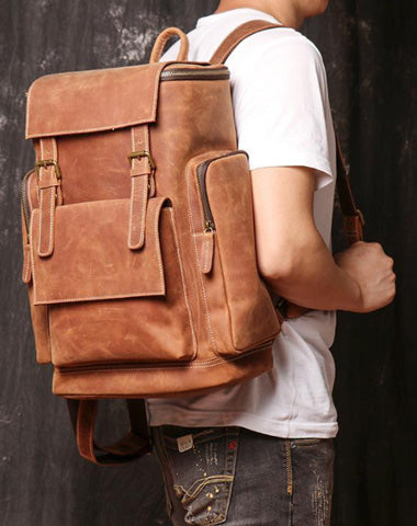 Design: Brown Mens Leather 15 inches Large School Laptop Backpack Brown Travel Backpacks for MenOverview: