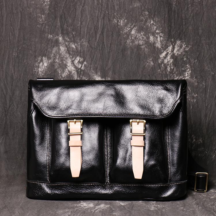 Design: Brown Leather Men Satchel Side Bag Messenger Bag Black Courier Bag For MenOverview:
