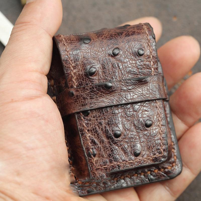Style: Brown Ostrich Leather Mens Holster Zippo Lighter Cases Standard Zippo Lighter Holder For Men