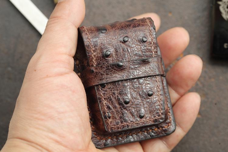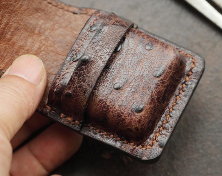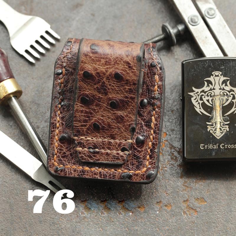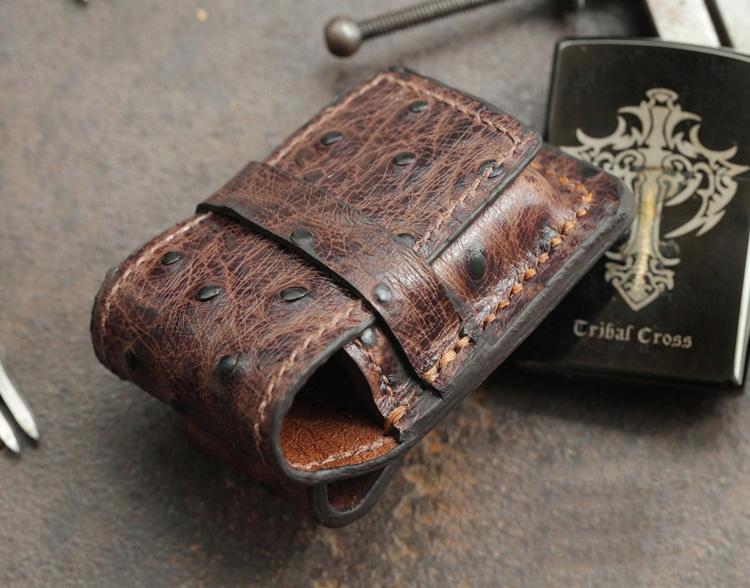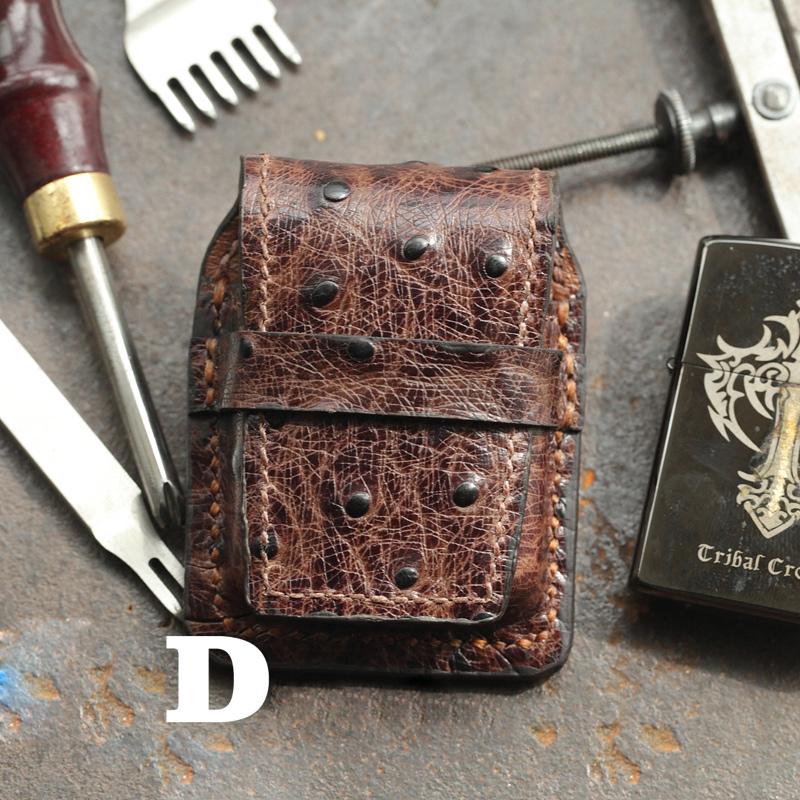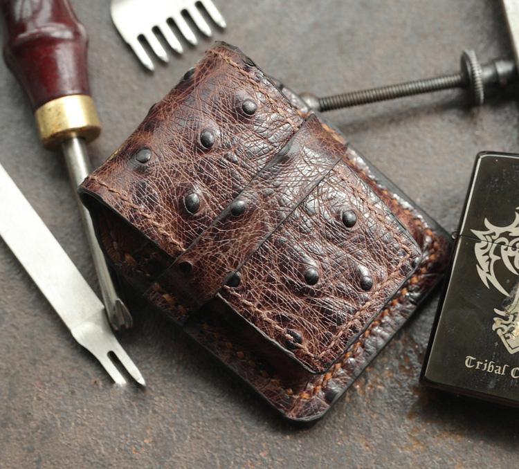 Design: Brown Ostrich Leather Mens Holster Zippo Lighter Cases Standard Zippo Lighter Holder For Men