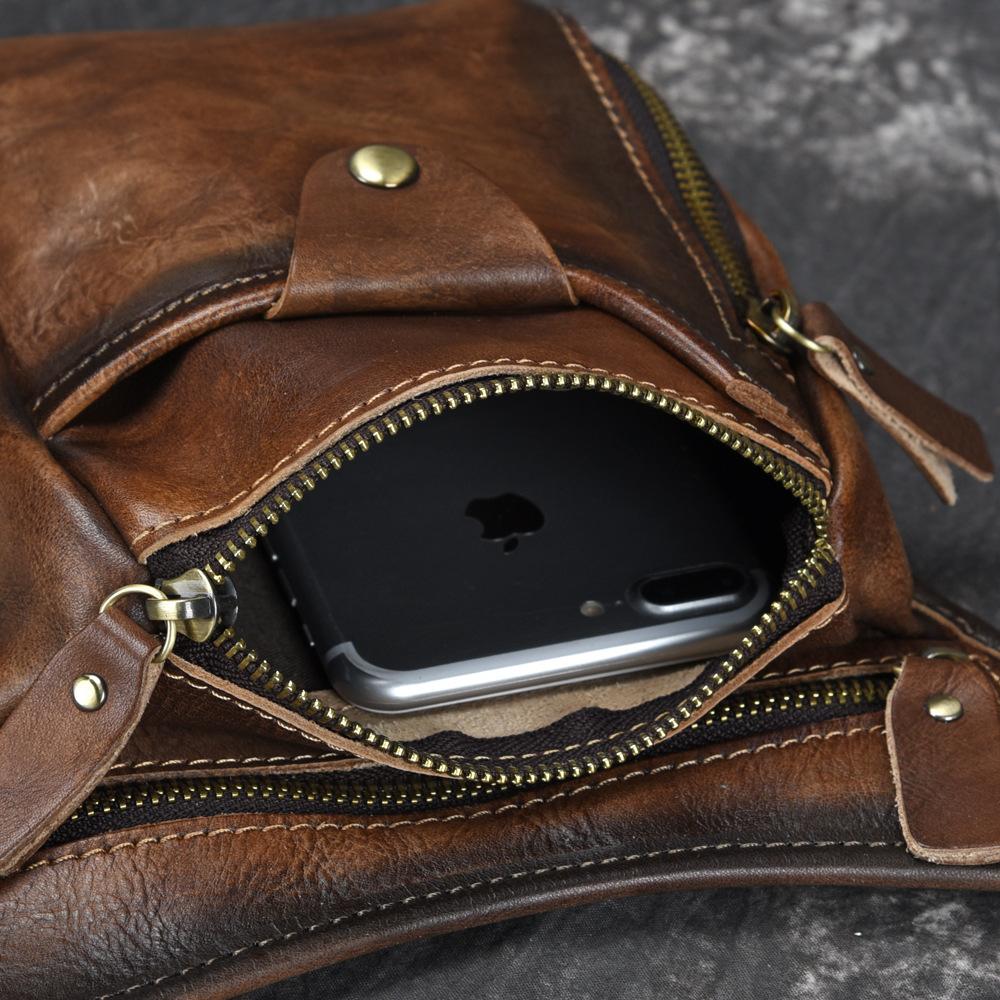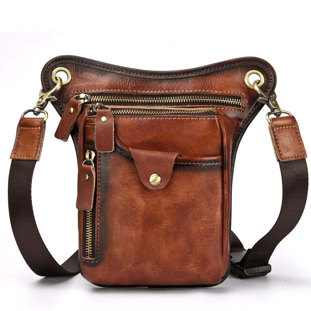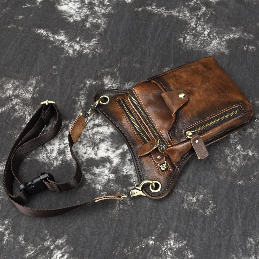 Style: Vintage Brown Leather Men's CELL PHONE HOLSTER MINI SIDE BAG BELT POUCH Drop Leg Bag For Men