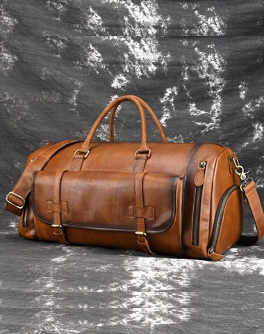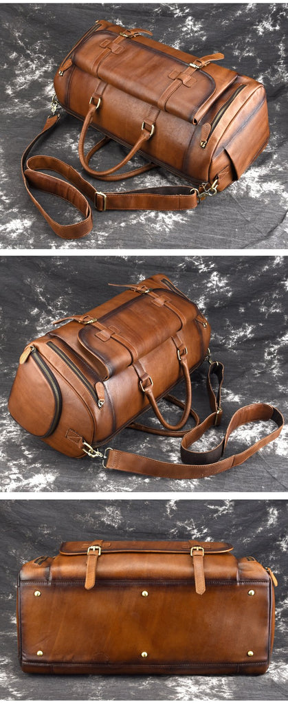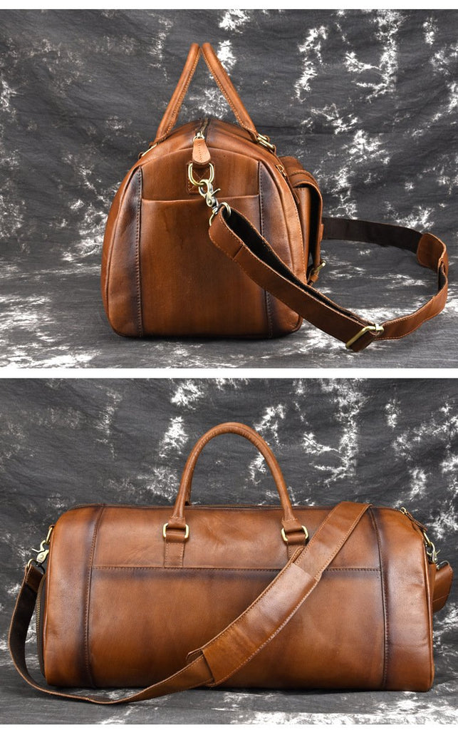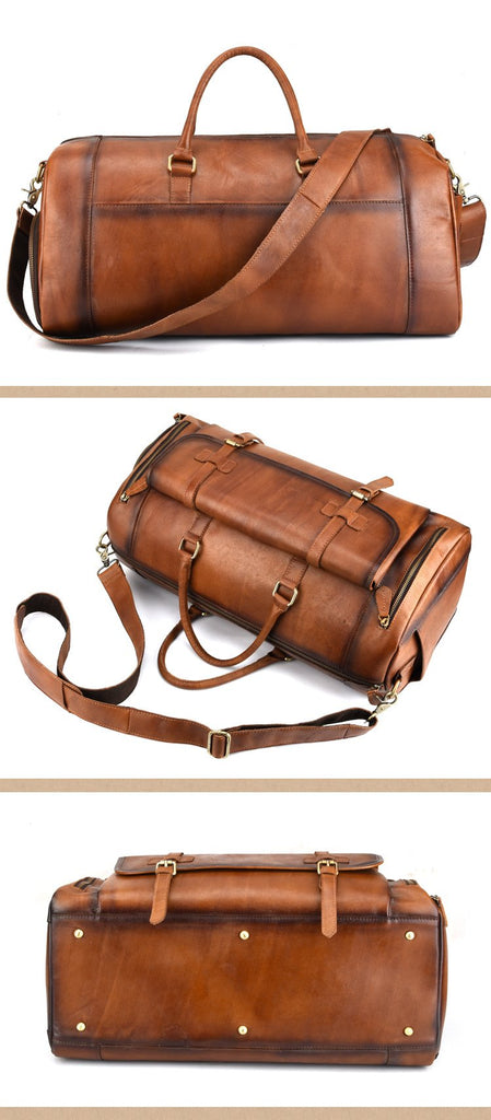 Design: Cool Brown Leather Men's Overnight Bag Travel Bag Duffel Bag Weekender Bag For Men