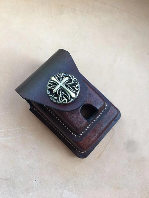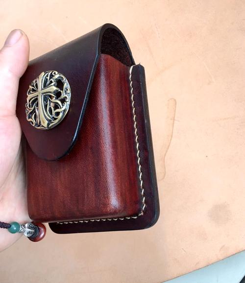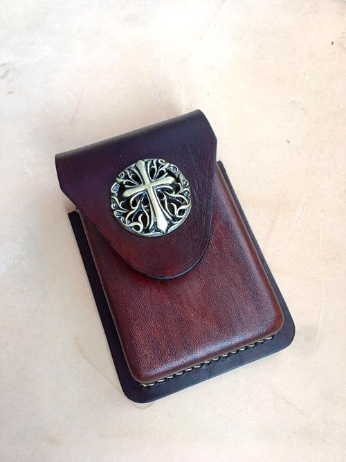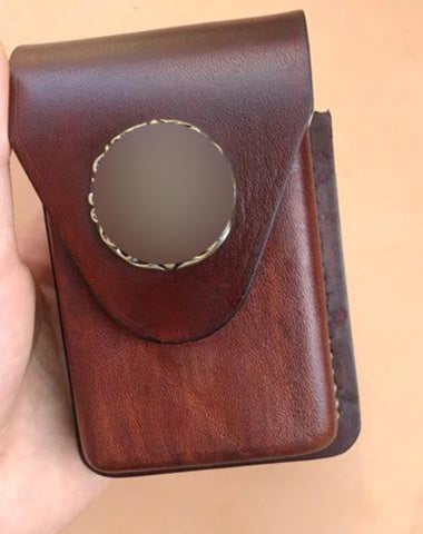 Design: Brown Thick Leather Cigarette Case with Lighter Cover Protective Lighter Cover For Men