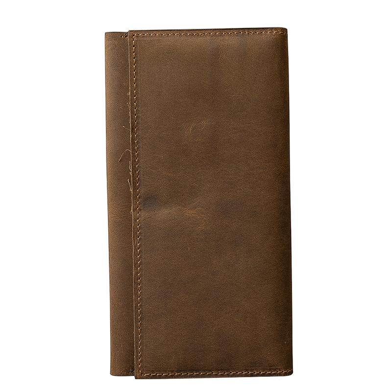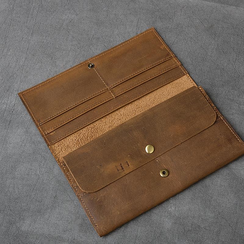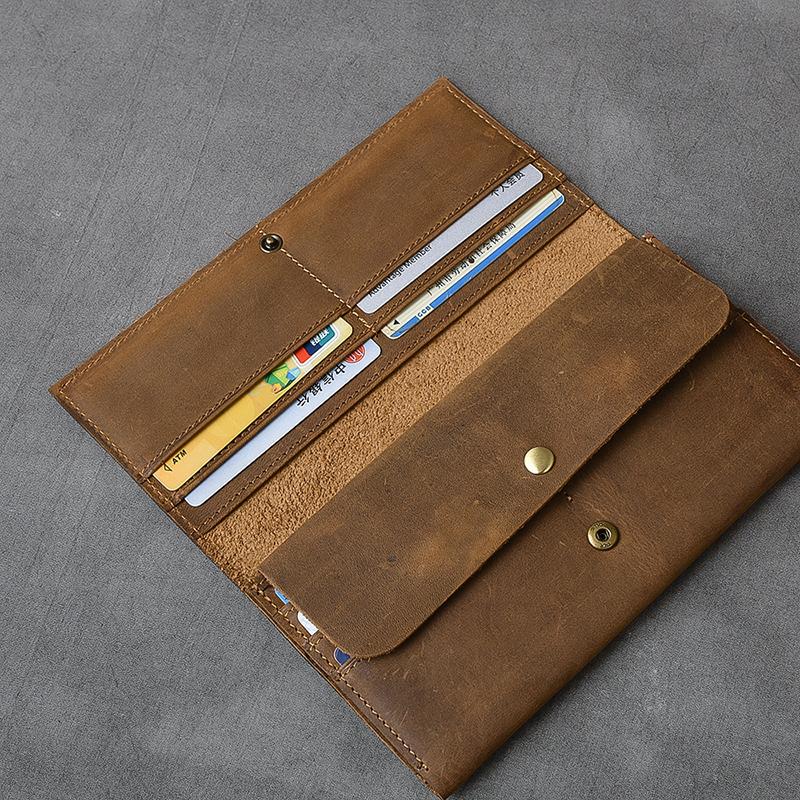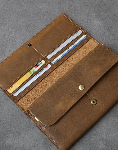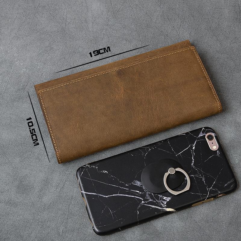 Design: Brown Waxed Leather Mens Long Wallet Long Bifold Multi-Card Wallet For Men