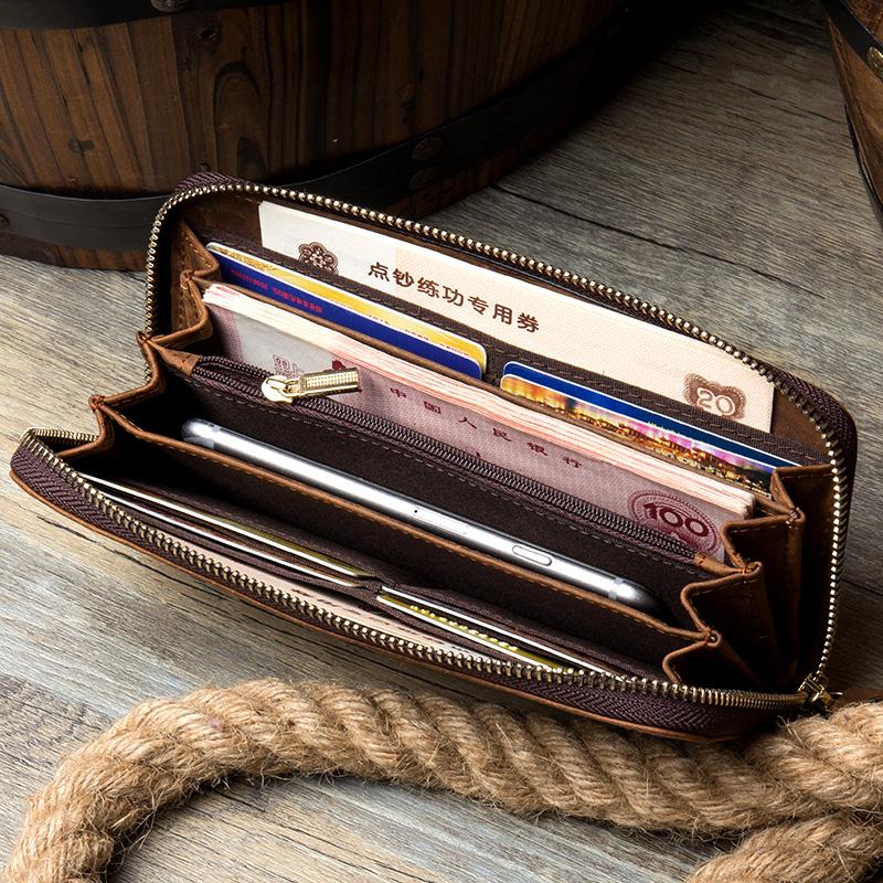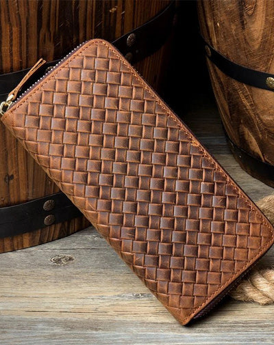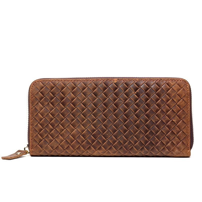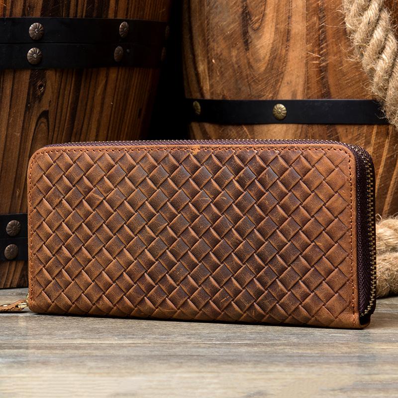 Design: Brown Woven Mens long Wallet Wristlet Bag Clutch Bag Bifold Long Wallet Hand Bag for Men