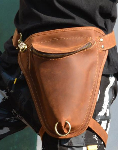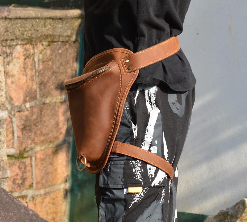 Design: Cool Brown Leather Men's Belt Pouch Belt Bag Drop Leg Bag Waist Bag For Men
