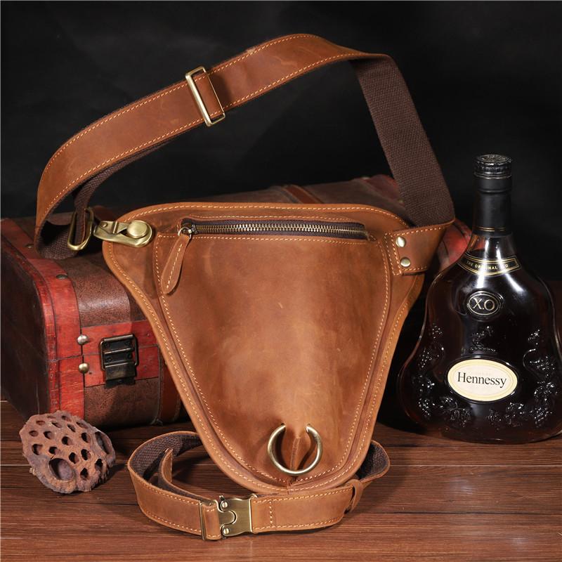 Style: Cool Brown Leather Men's Belt Pouch Belt Bag Drop Leg Bag Waist Bag For Men
