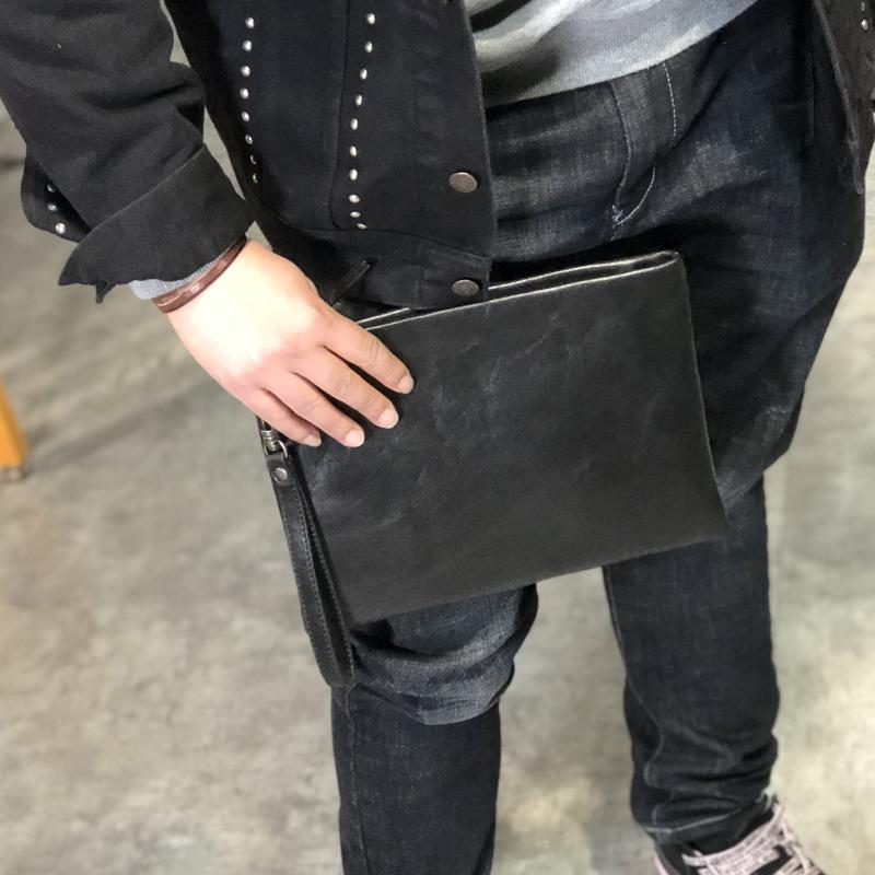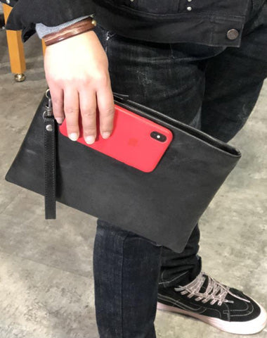 Style: Business Black Handmade Leather Mens Long Wallet Wristet Wallet Clutch Wallet Hand Bag For Men