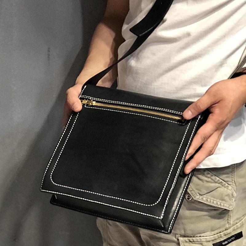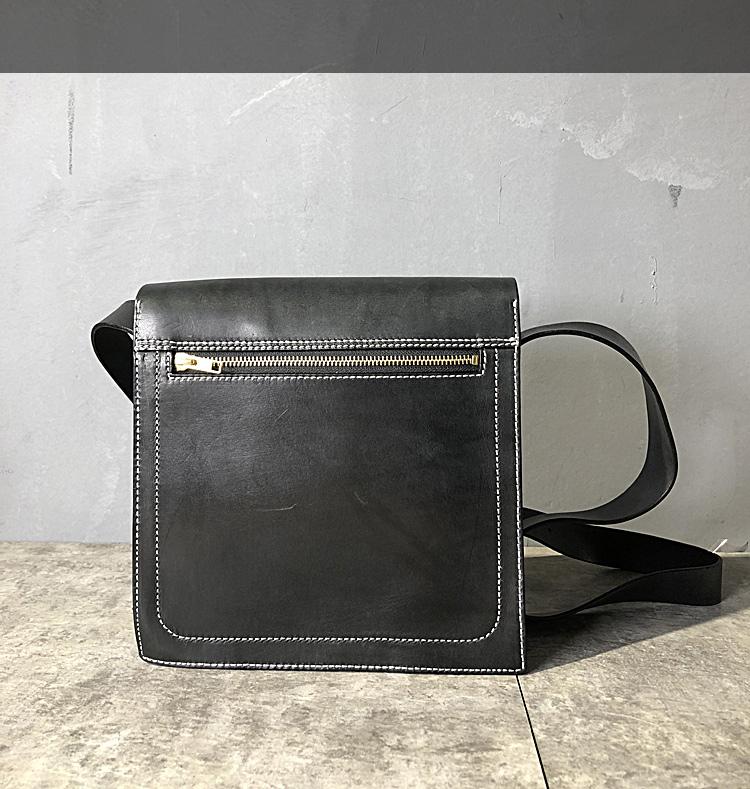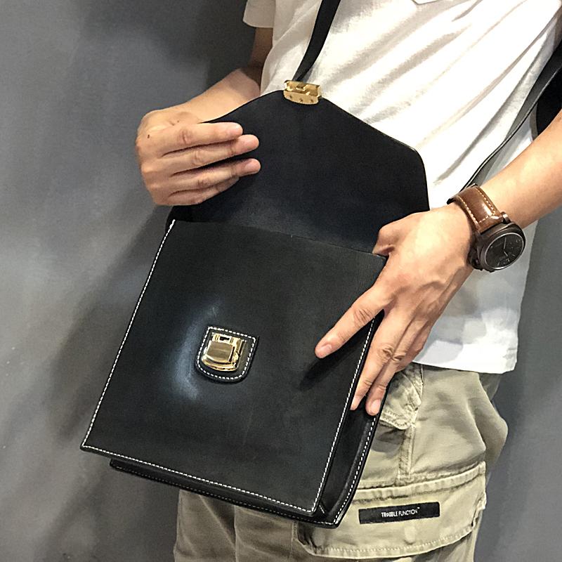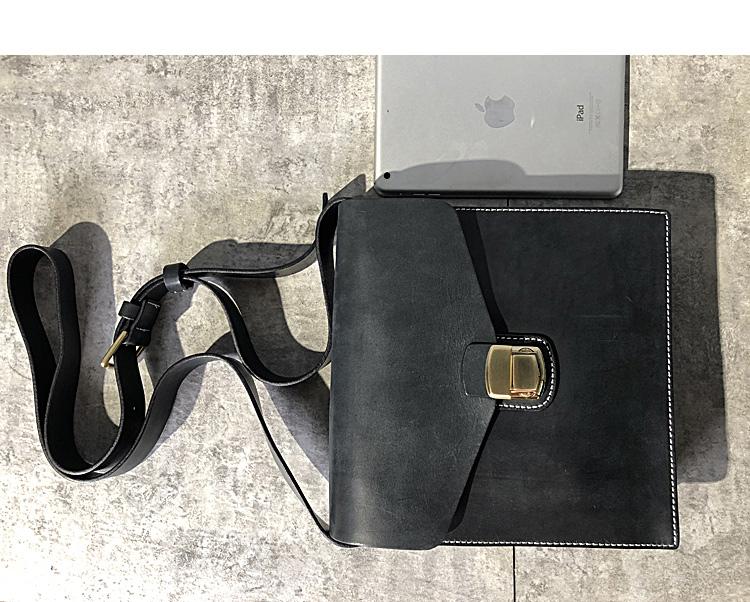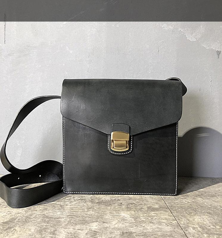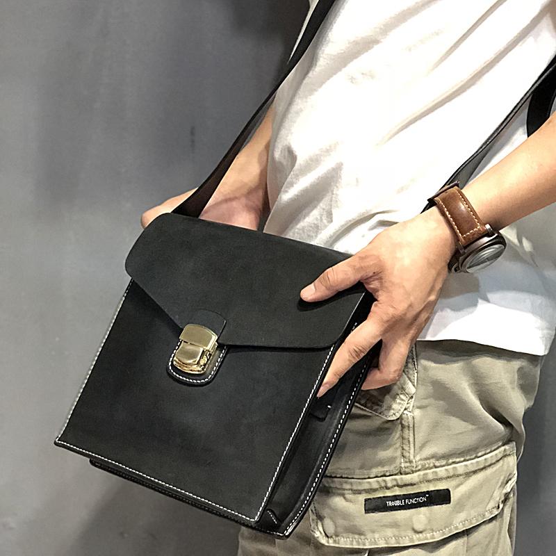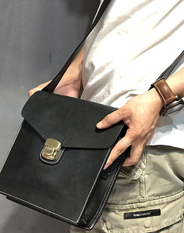 Design: Business Black Leather Mens 10 inches Square Side Bag Messenger Bag Khaki Shoulder Bag Courier Bag for Men