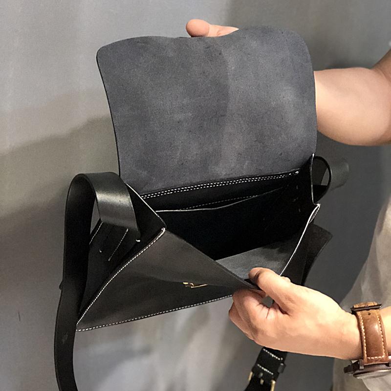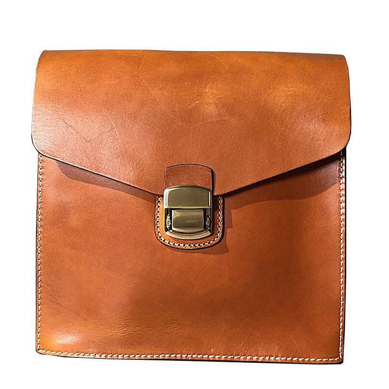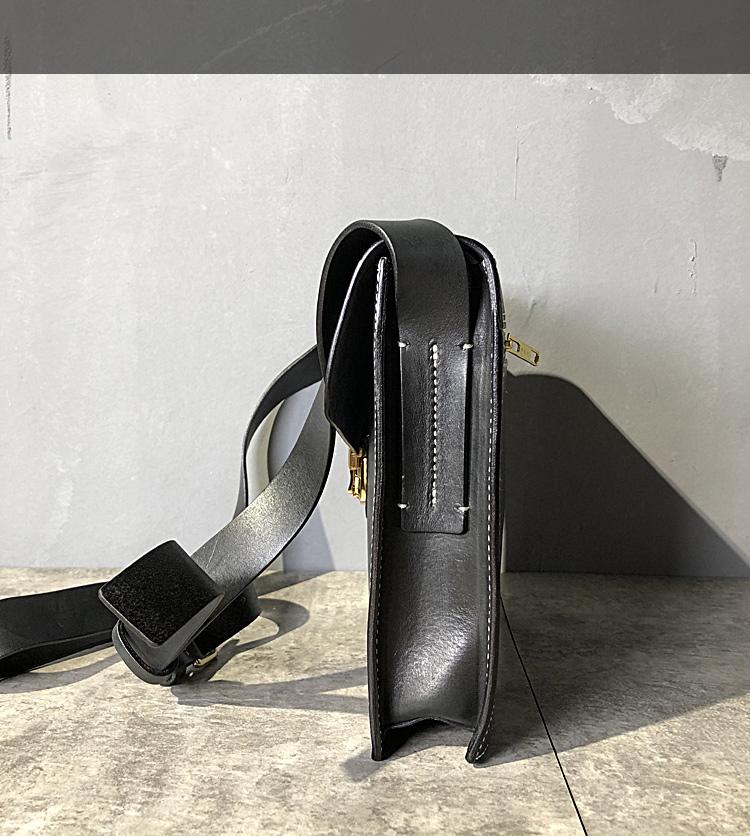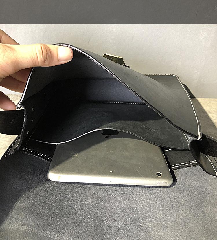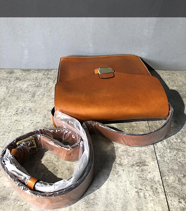 Design: Business Black Leather Mens 10 inches Square Side Bag Messenger Bag Khaki Shoulder Bag Courier Bag for Men
