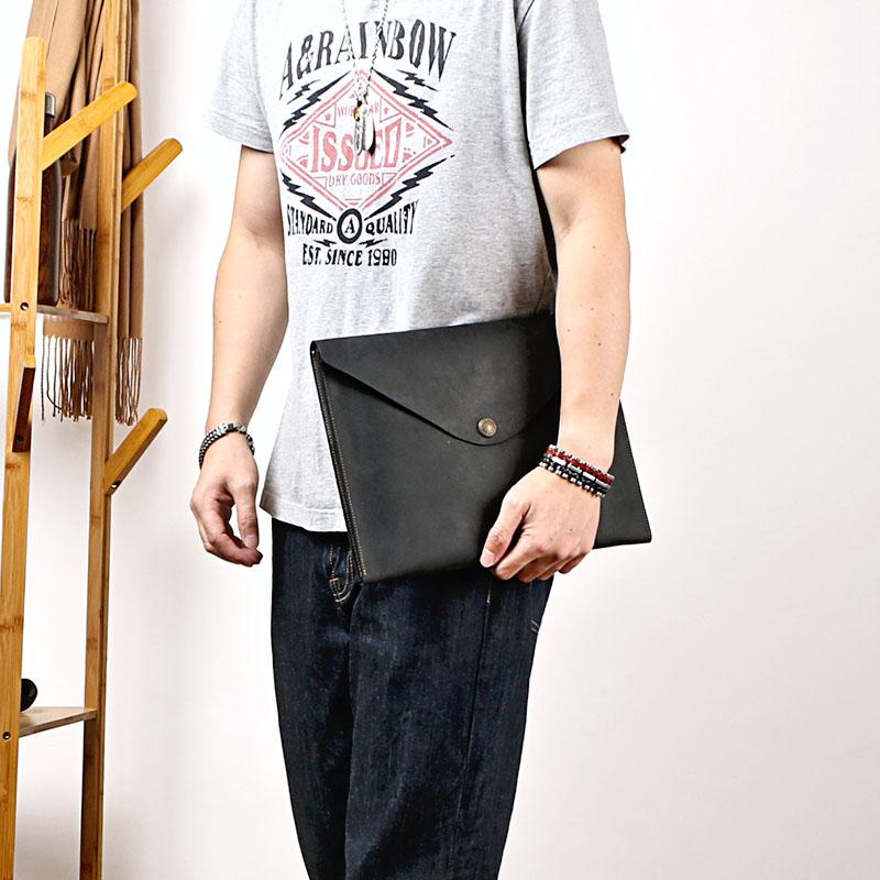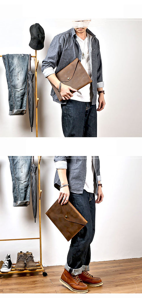 Design: Business Leather Mens Black Envelope Bag Document Bag Brown Clutch For Men