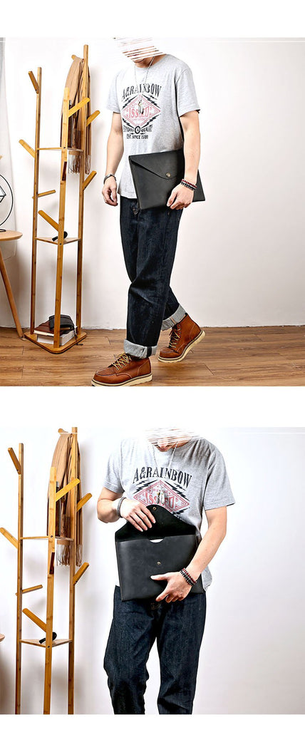 Style: Business Leather Mens Black Envelope Bag Document Bag Brown Clutch For Men