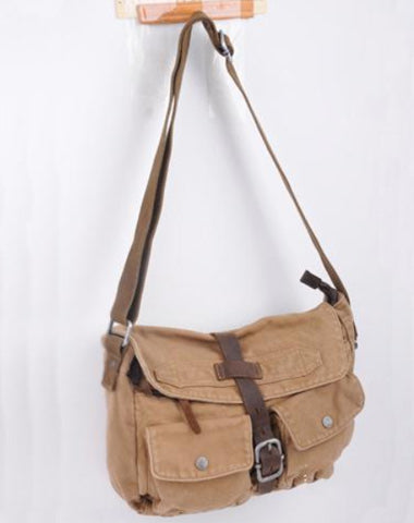 Design: Canvas Black Mens 10 inches Khaki Vertical Postman Bag Canvas Messenger Bags Courier Bag For Men
