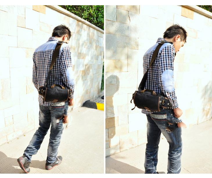 Style: Canvas Black Mens 8 inches Khaki Vertical Postman Bag Canvas Messenger Bags Courier Bag For Men