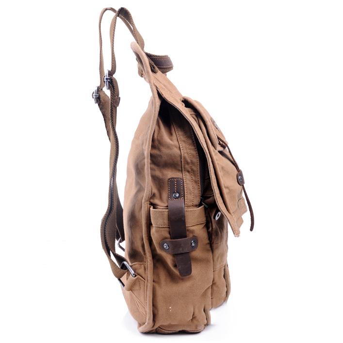 Design: Canvas Black Mens Hiking Bag 12 inches Khaki Chest Bag Side Bag Bucket One Shoulder Backpack For Men