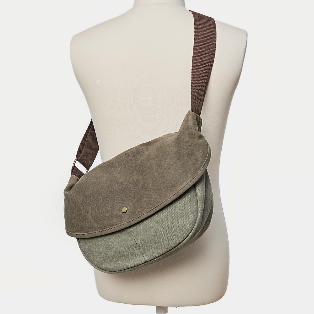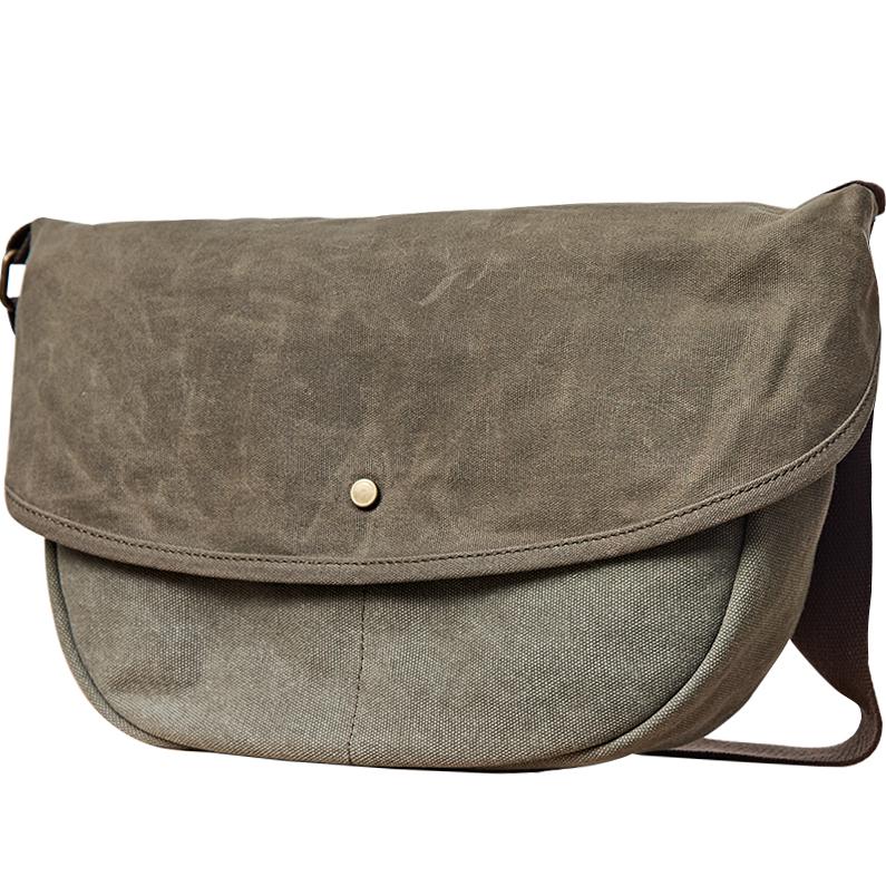 Design: Canvas Cool Mens 12 inches Side Bags Green Canvas Leather Messenger Bags Canvas Travel Courier Bag for Men