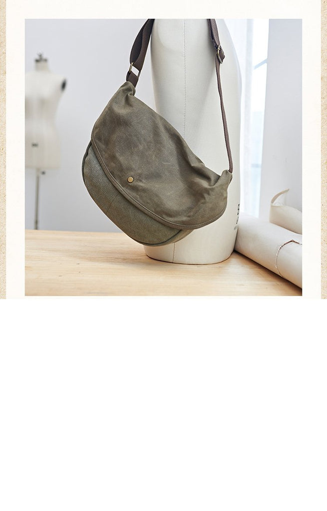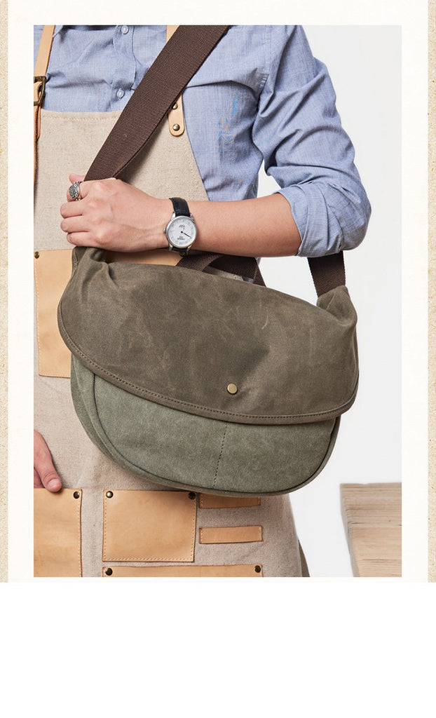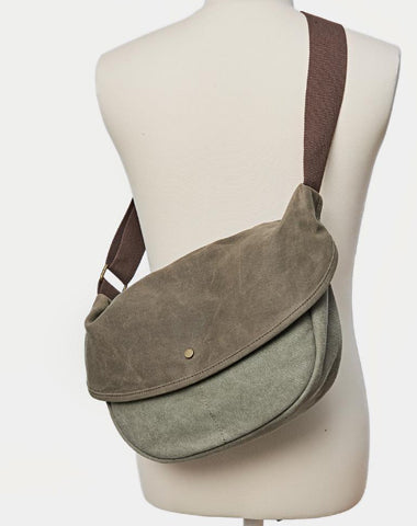Style: Canvas Cool Mens 12 inches Side Bags Green Canvas Leather Messenger Bags Canvas Travel Courier Bag for Men