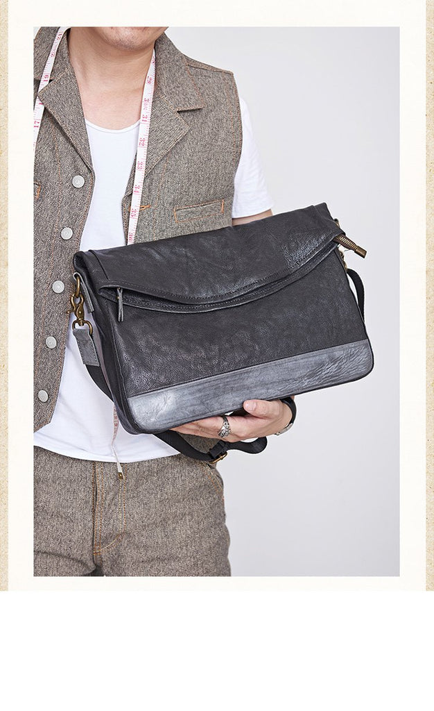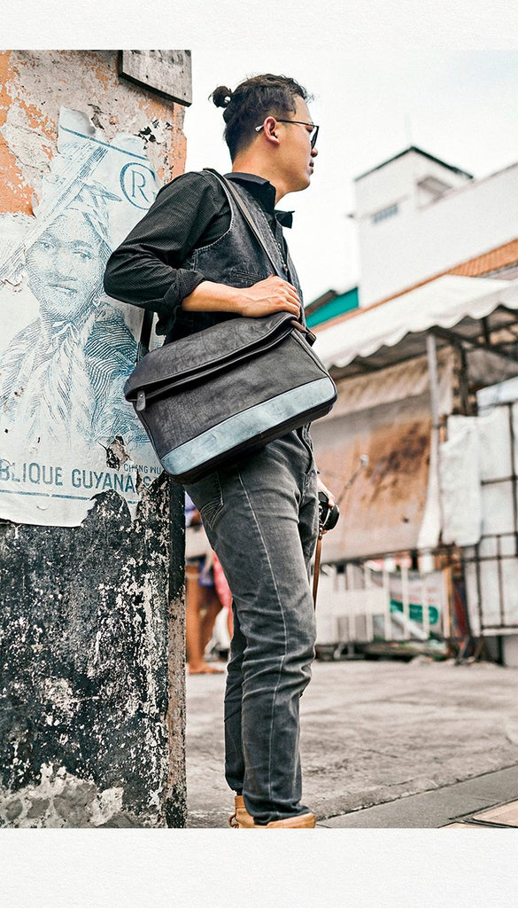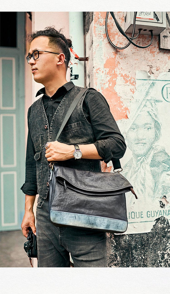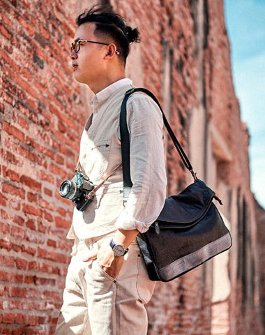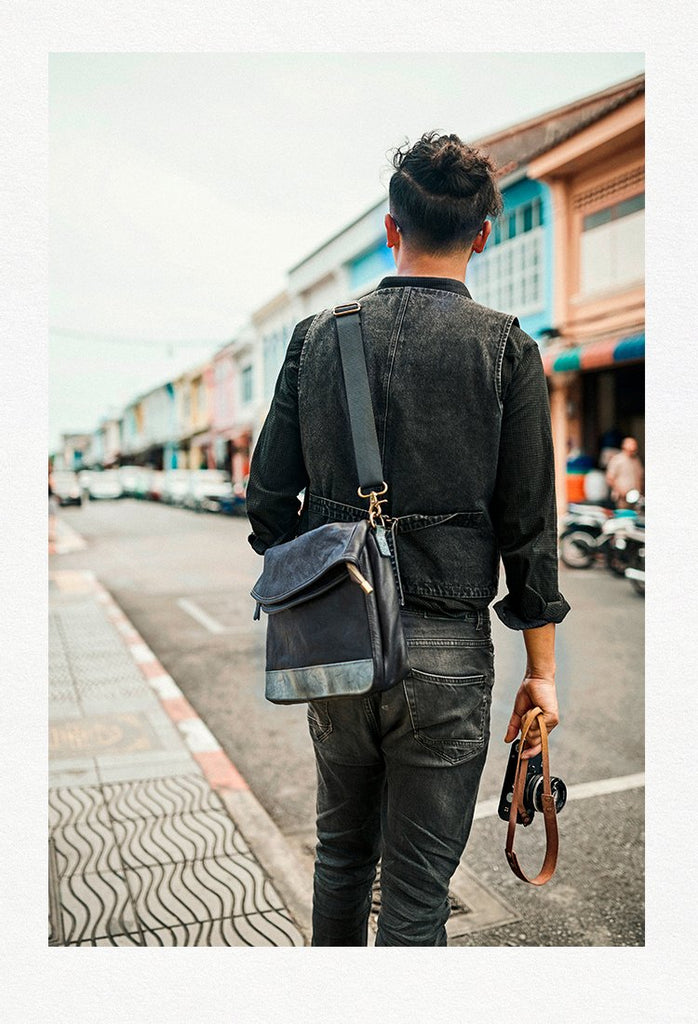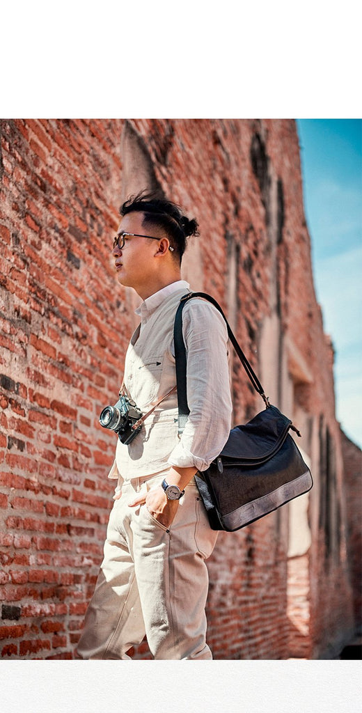 Design: Canvas Cool Mens Black 12 inches Side Bags Canvas Leather Messenger Bags Canvas Travel Courier Bag for Men