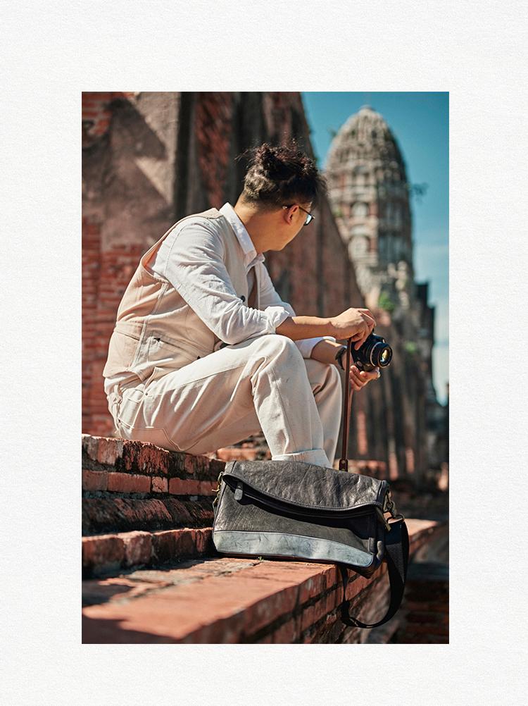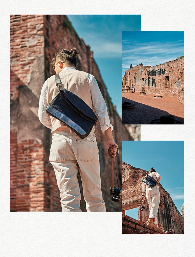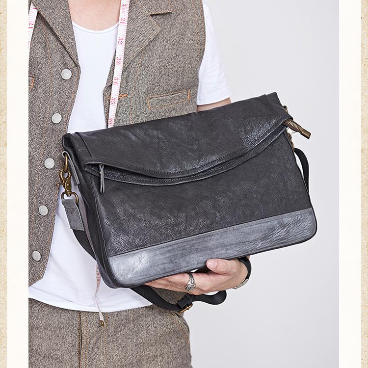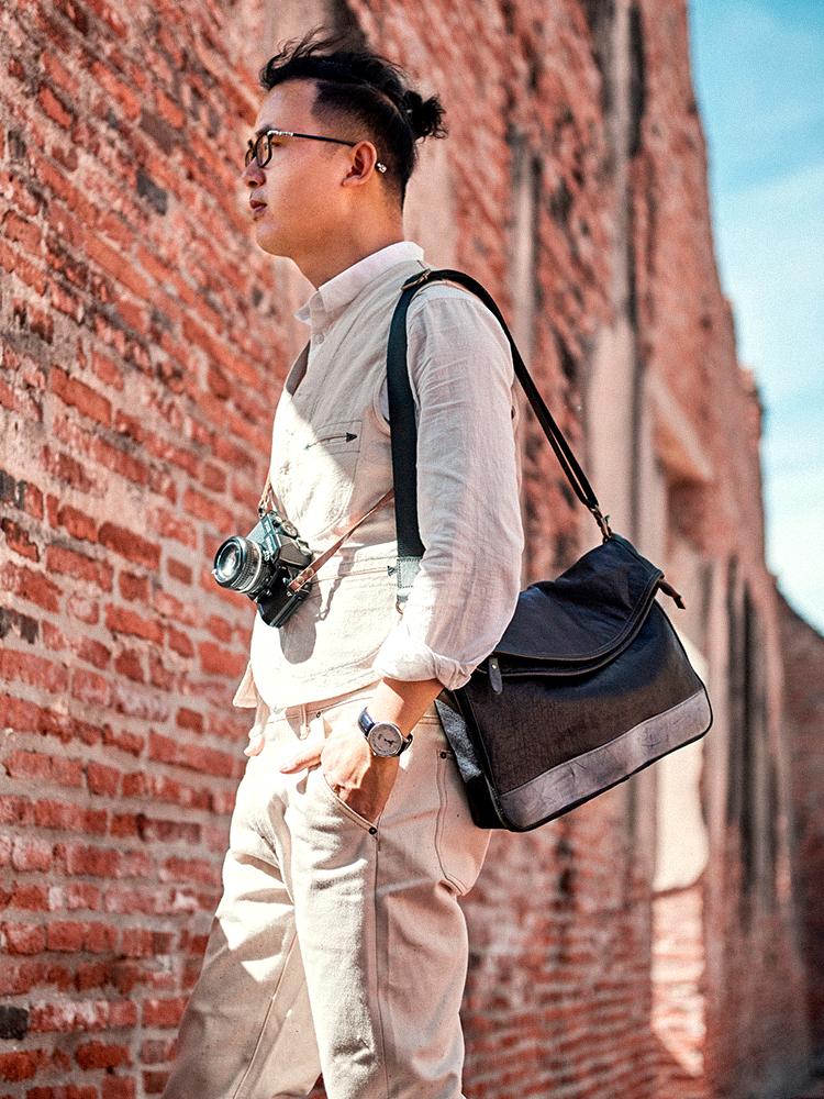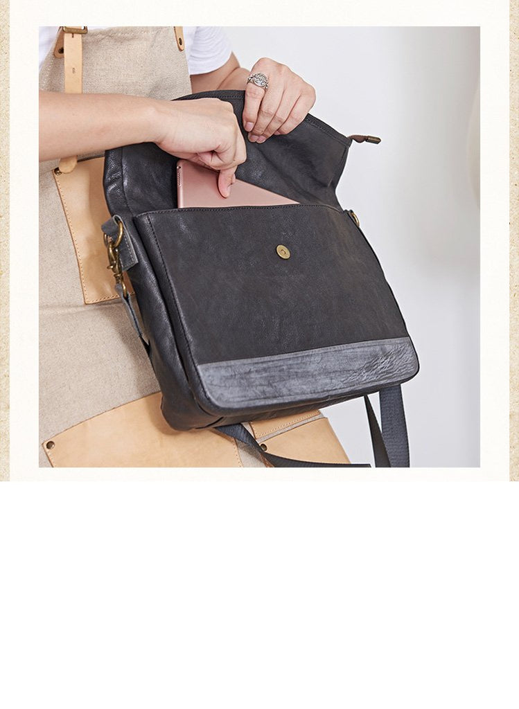 Design: Canvas Cool Mens Black 12 inches Side Bags Canvas Leather Messenger Bags Canvas Travel Courier Bag for Men