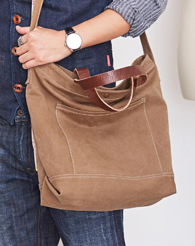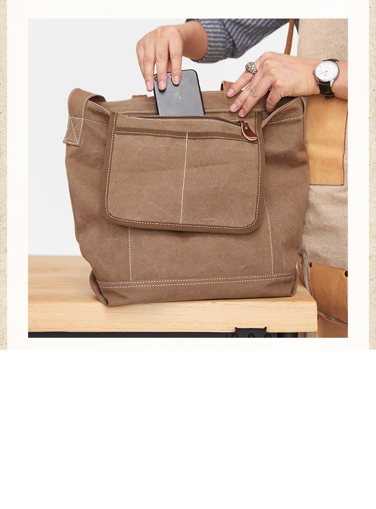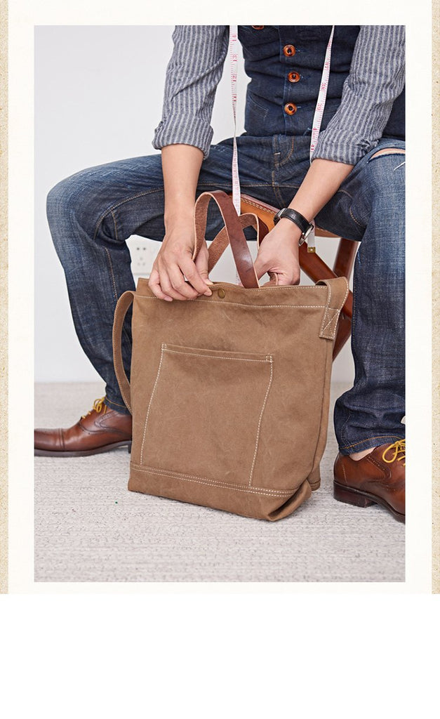Style: Canvas Cool Mens Brown 13 inches Tote Bag Canvas Handbag Canvas Tote for Men Women