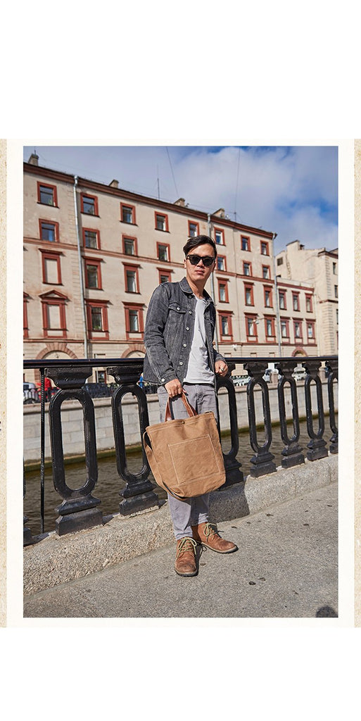 Design: Canvas Cool Mens Brown 13 inches Tote Bag Canvas Handbag Canvas Tote for Men Women