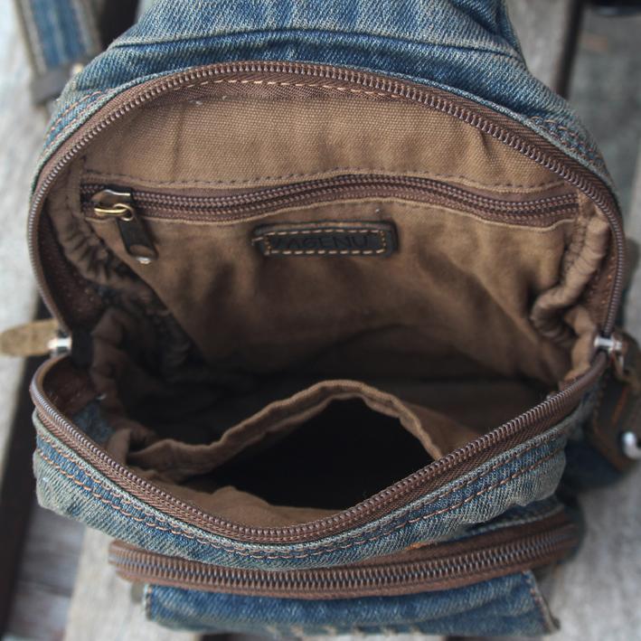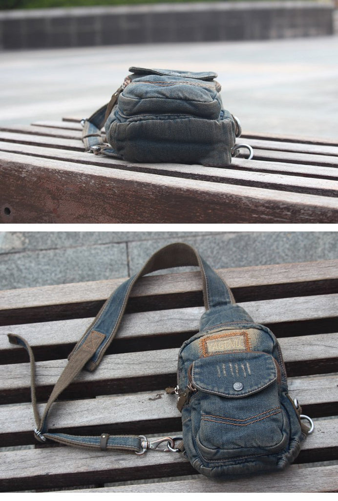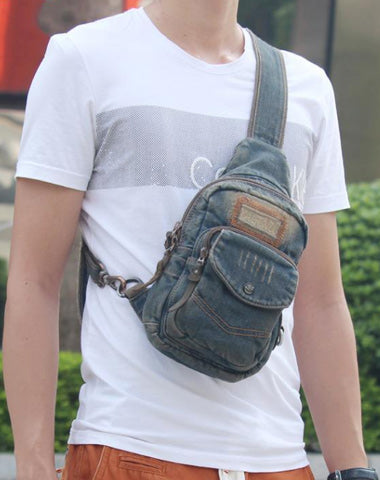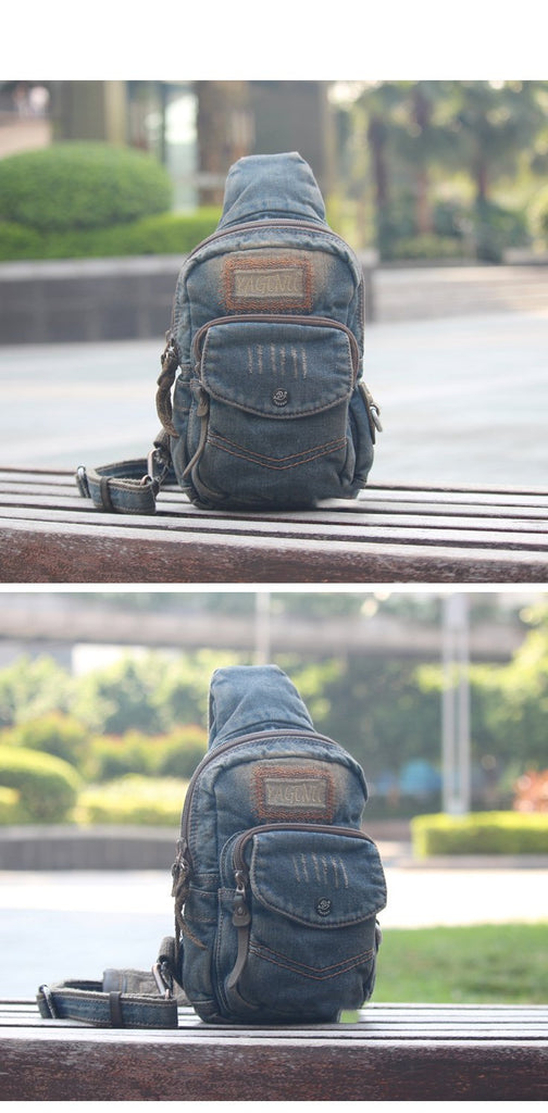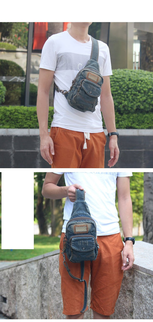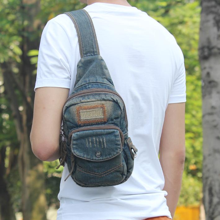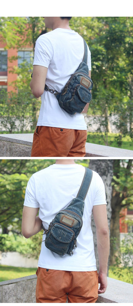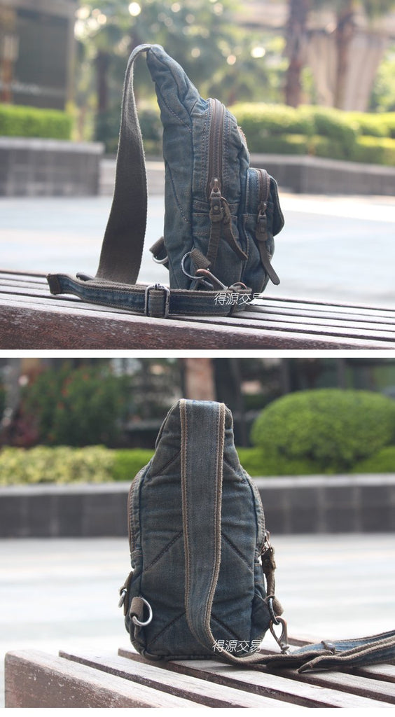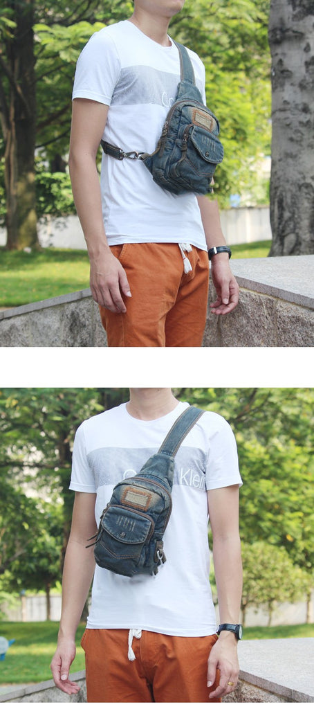 Style: Jean Vintage Blue Messenger Bag Chest Bag Jean Blue One Shoulder Backpack For Men