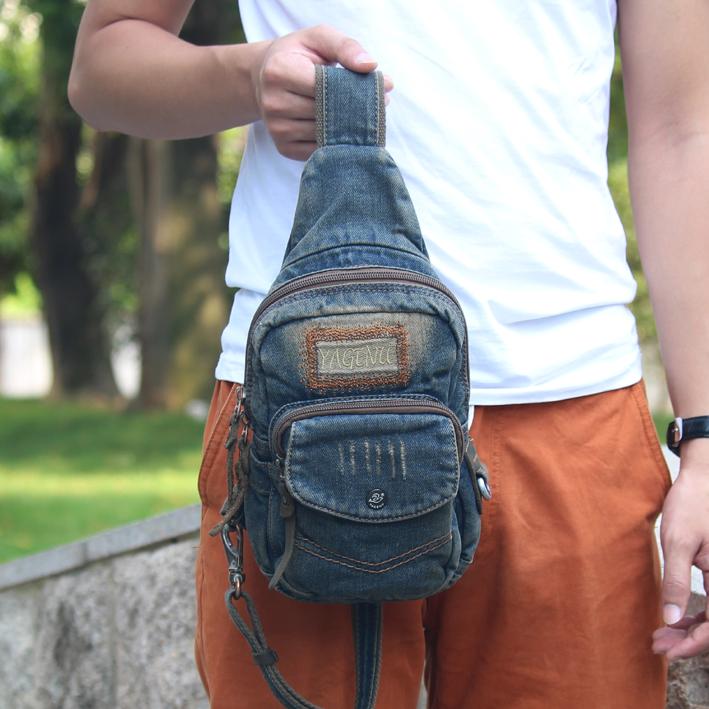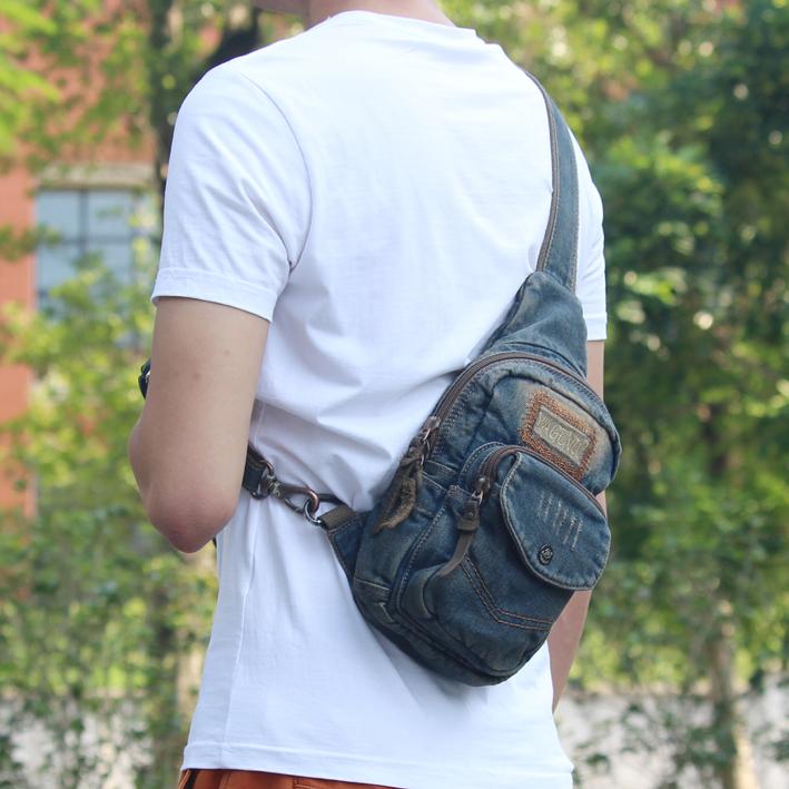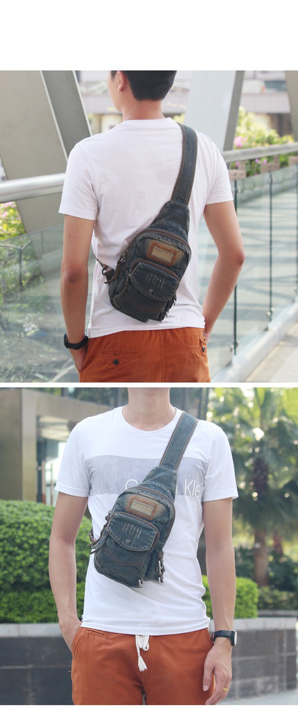 Design: Jean Vintage Blue Messenger Bag Chest Bag Jean Blue One Shoulder Backpack For Men