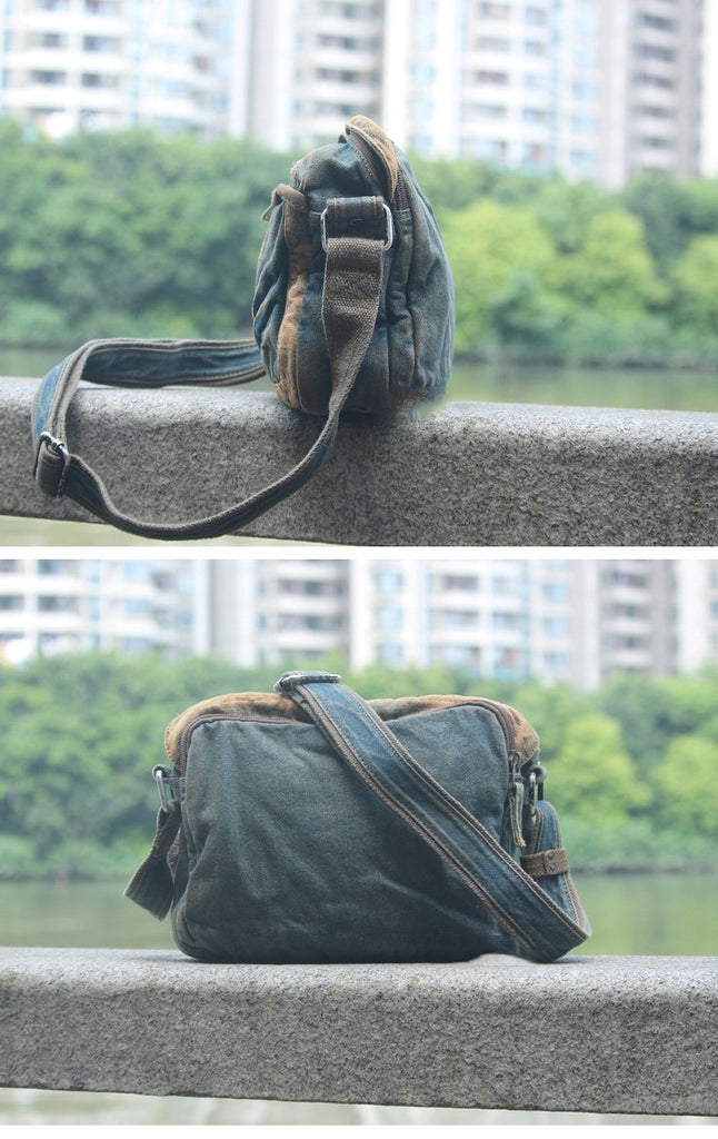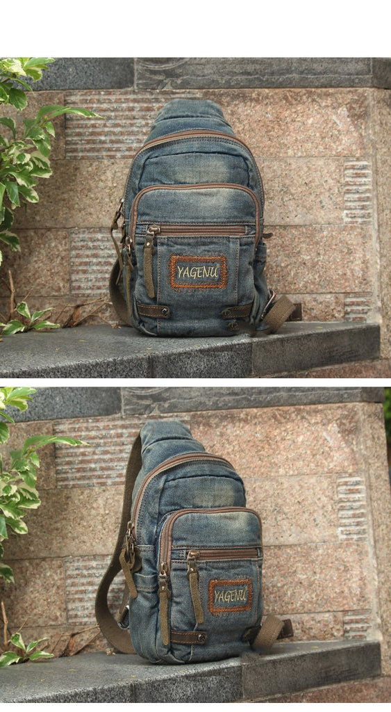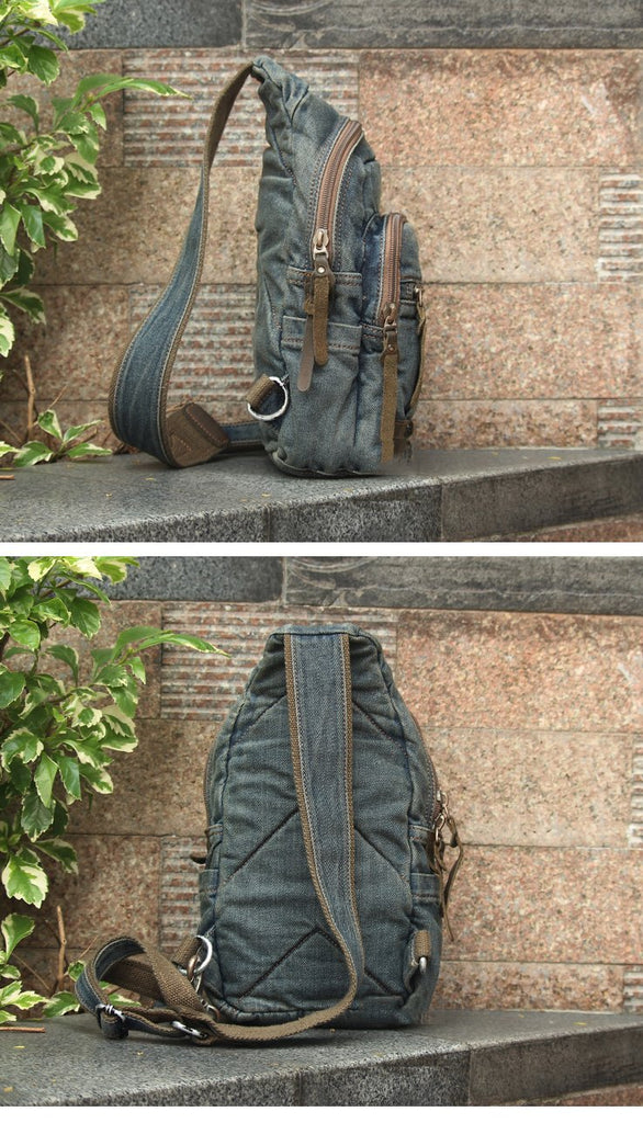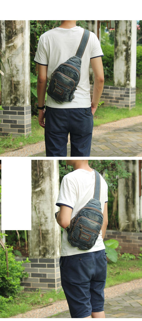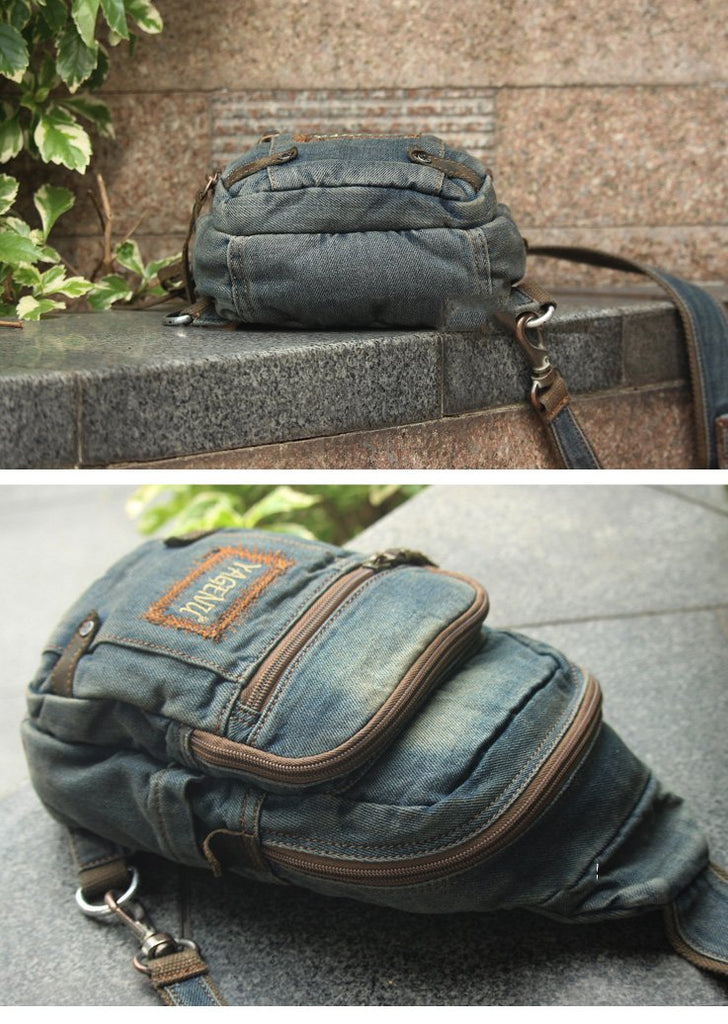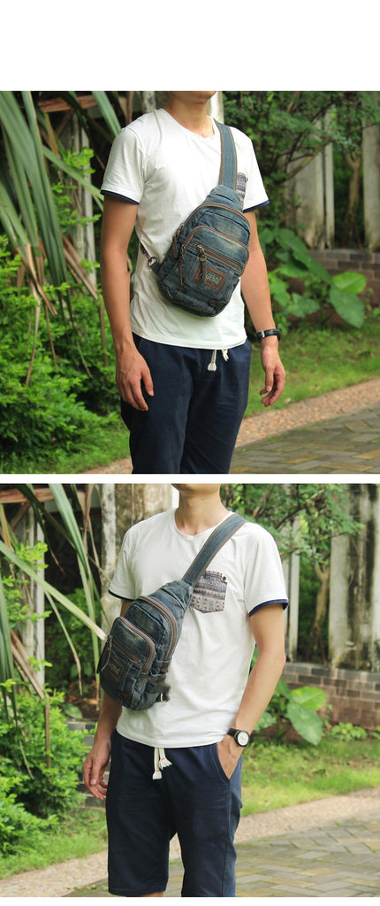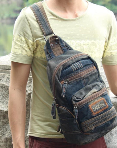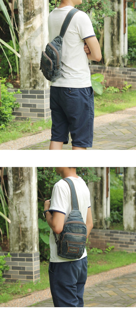 Style: Jean Vintage Blue Mens Sling Bag Chest Bags Jean One Shoulder Backpack For Men