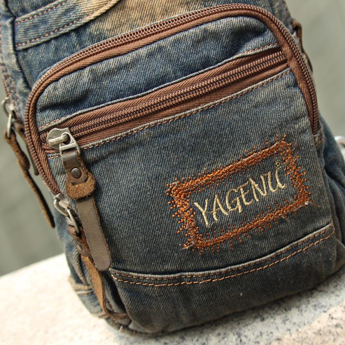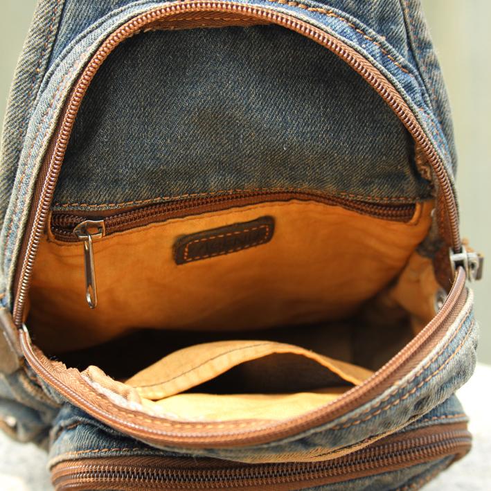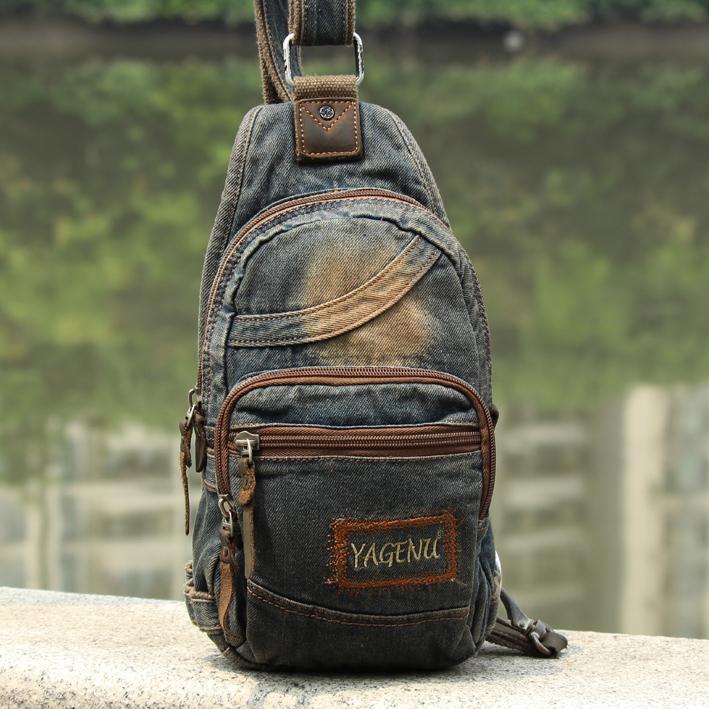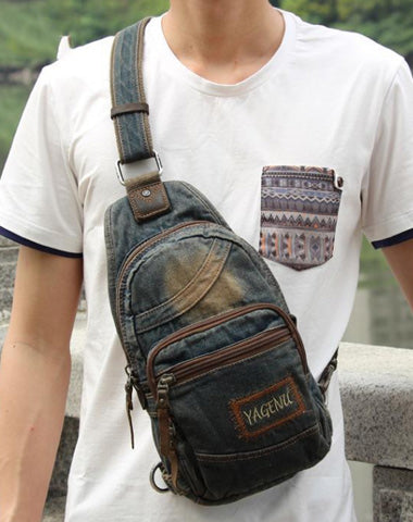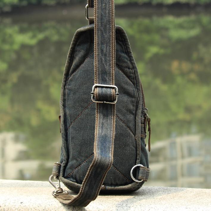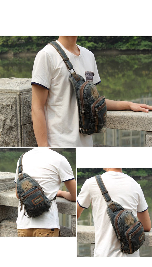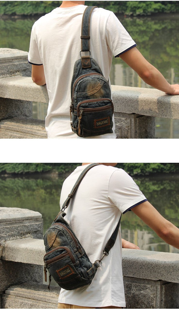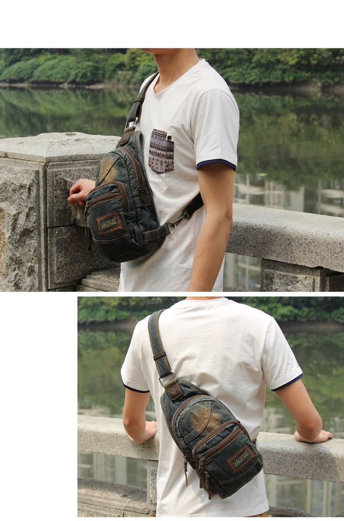Style: Canvas Denim Blue Mens 8 inches Sling Bag Chest Bags One Shoulder Backpack For Men