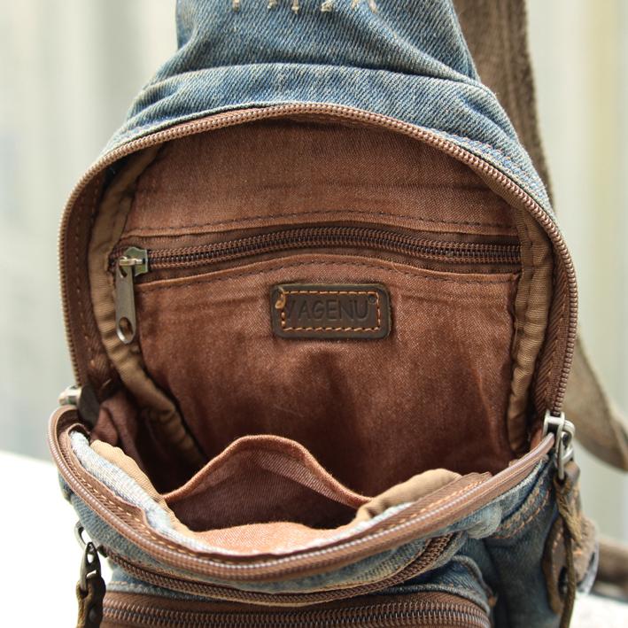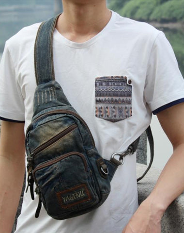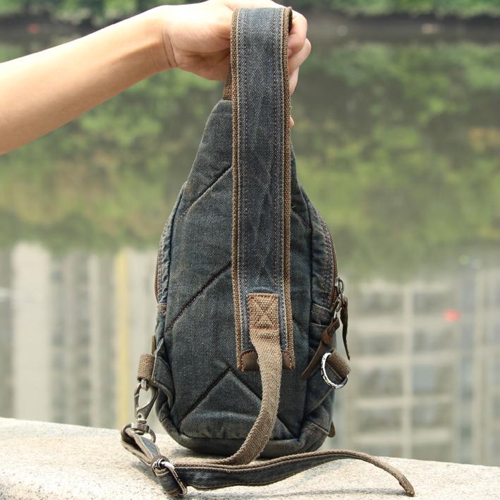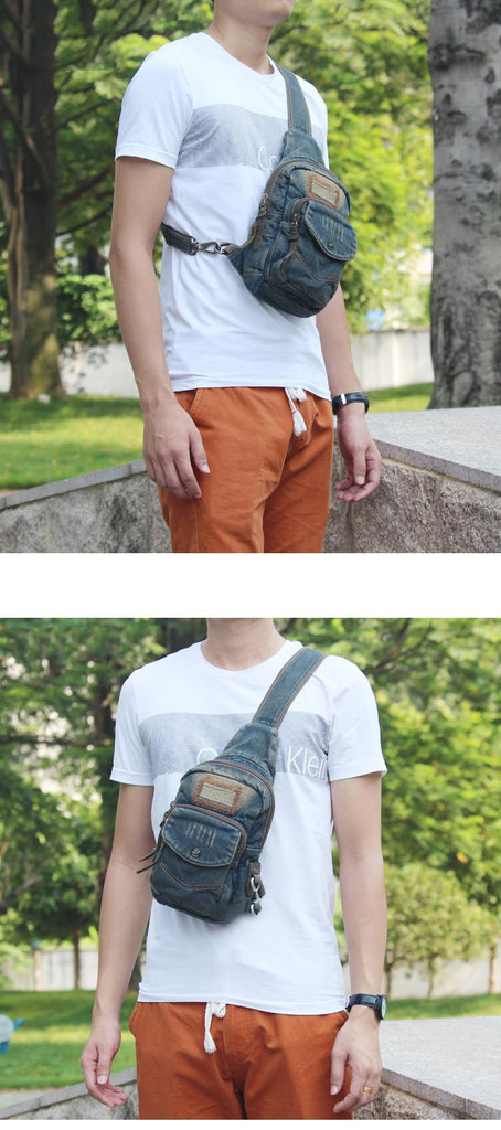 Fashion Jean Blue Mens Sling Bag Chest Bags Denim Sling Pack One Shoulder Backpacks For Men