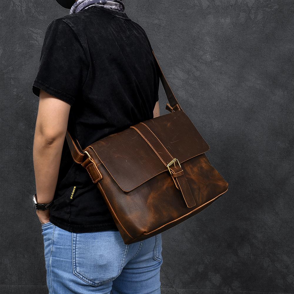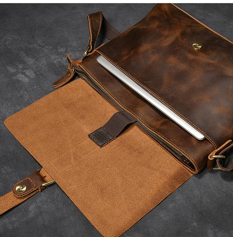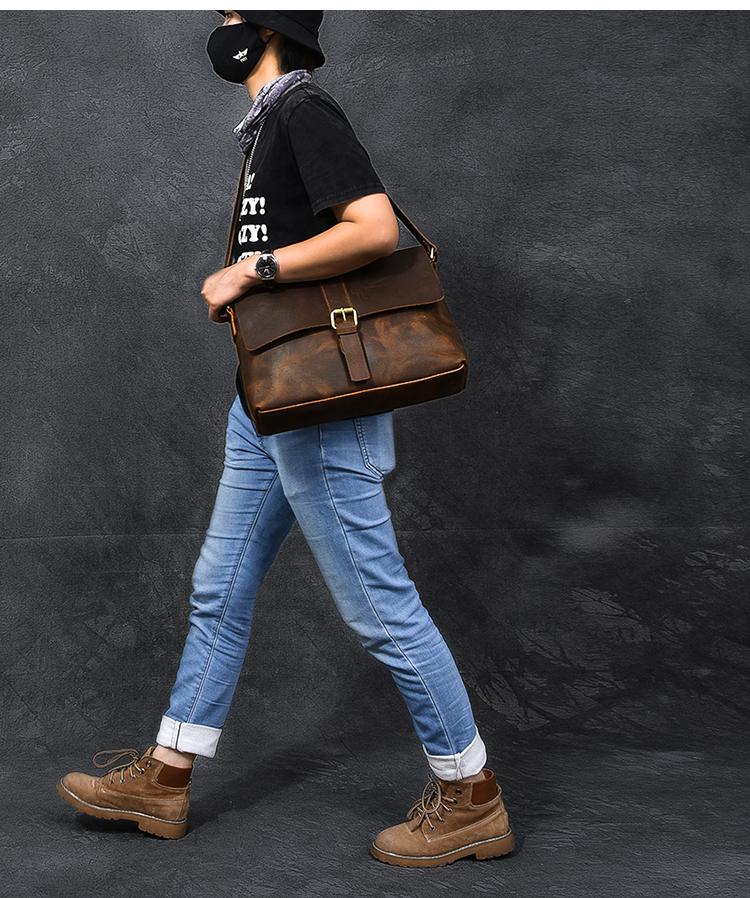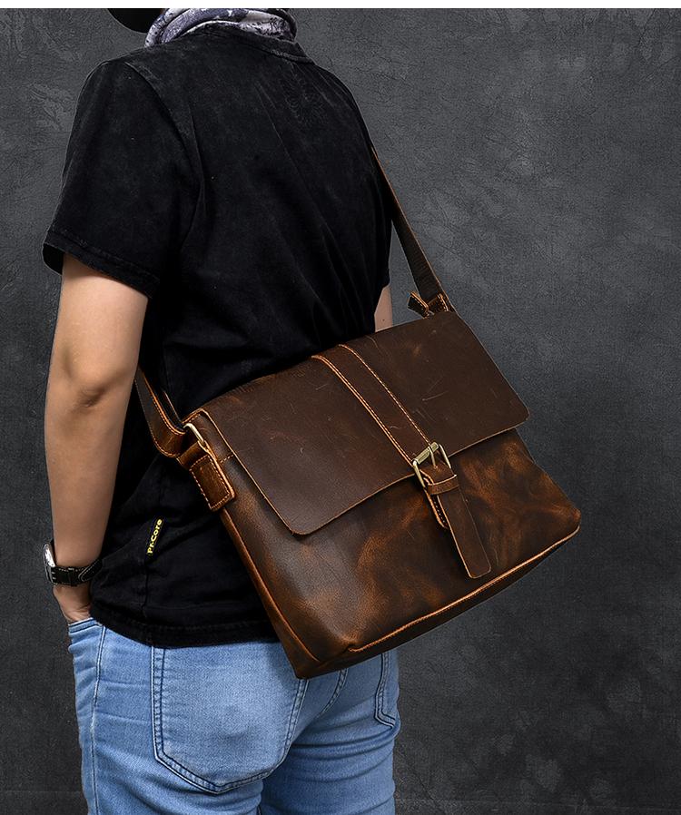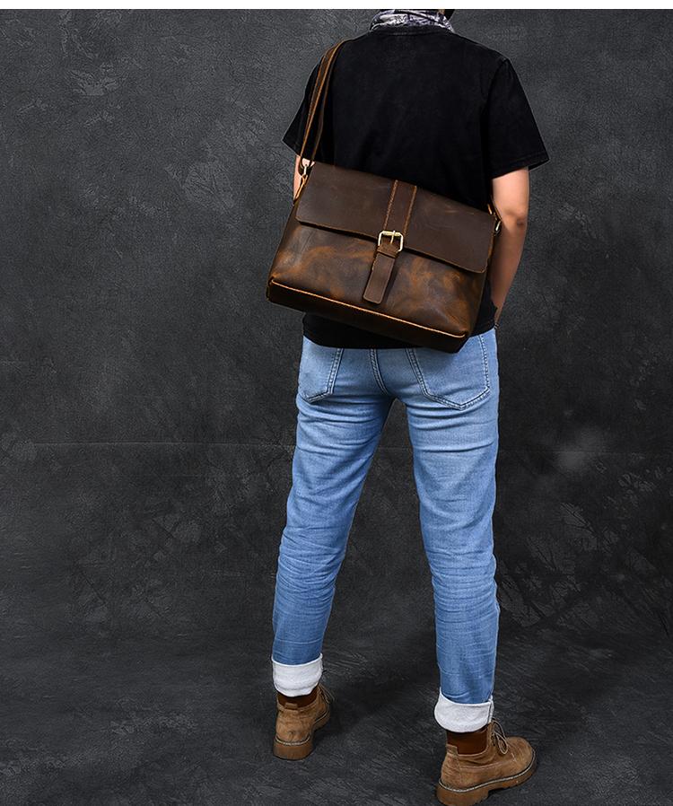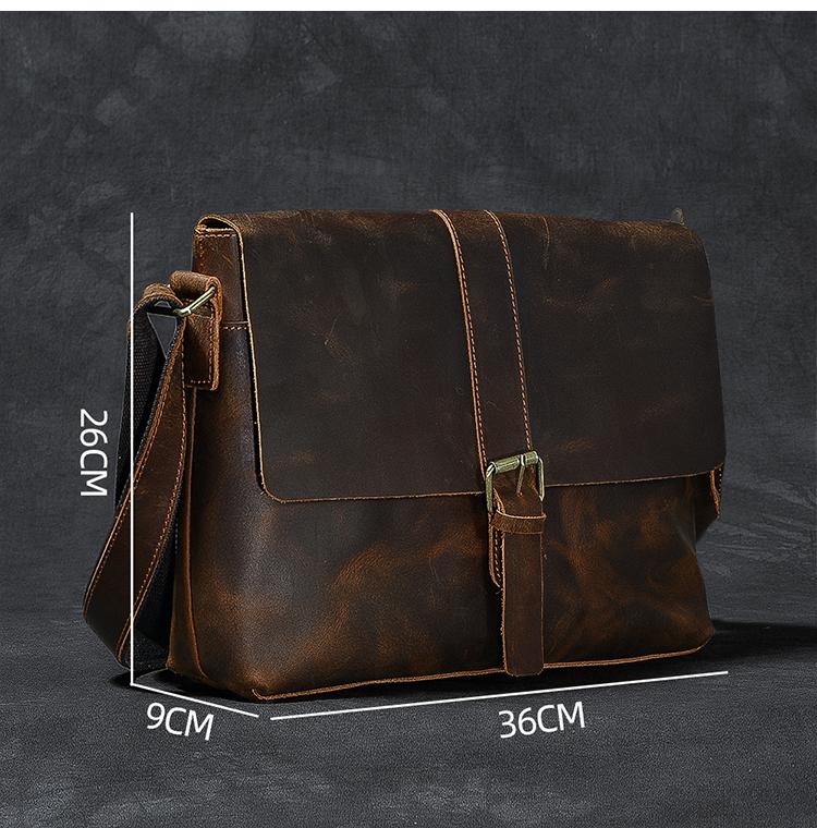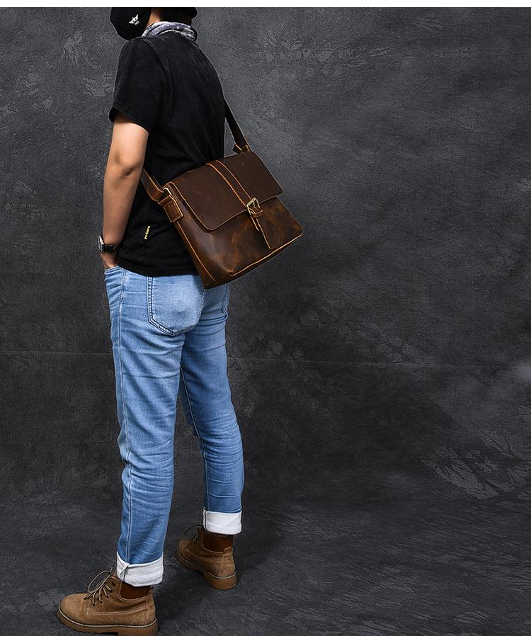 Design: Canvas Leather Mens 13‘’ Brown Side Bag Retro Messenger Bag Shoulder Bag For Men
