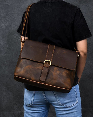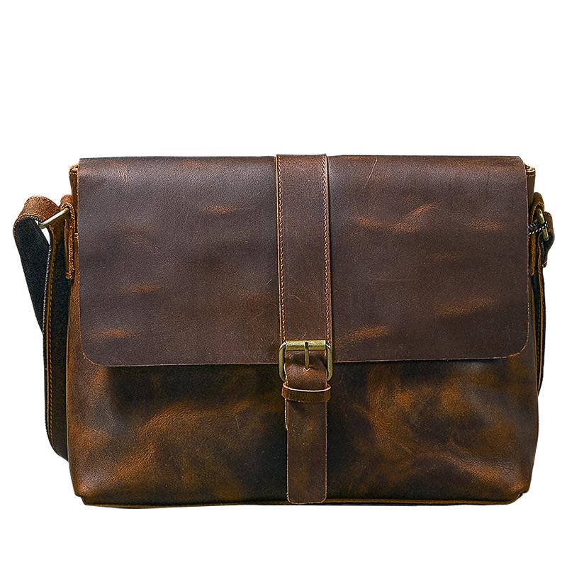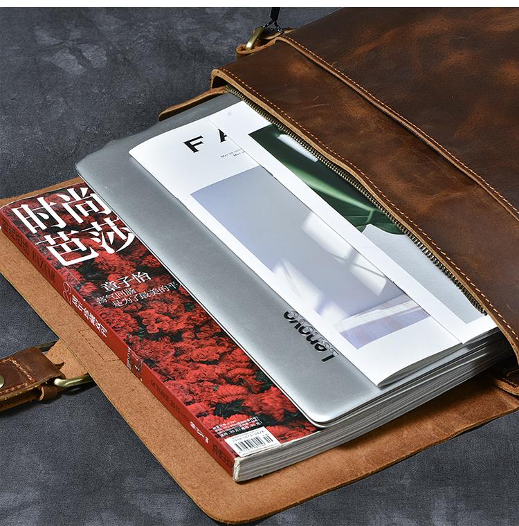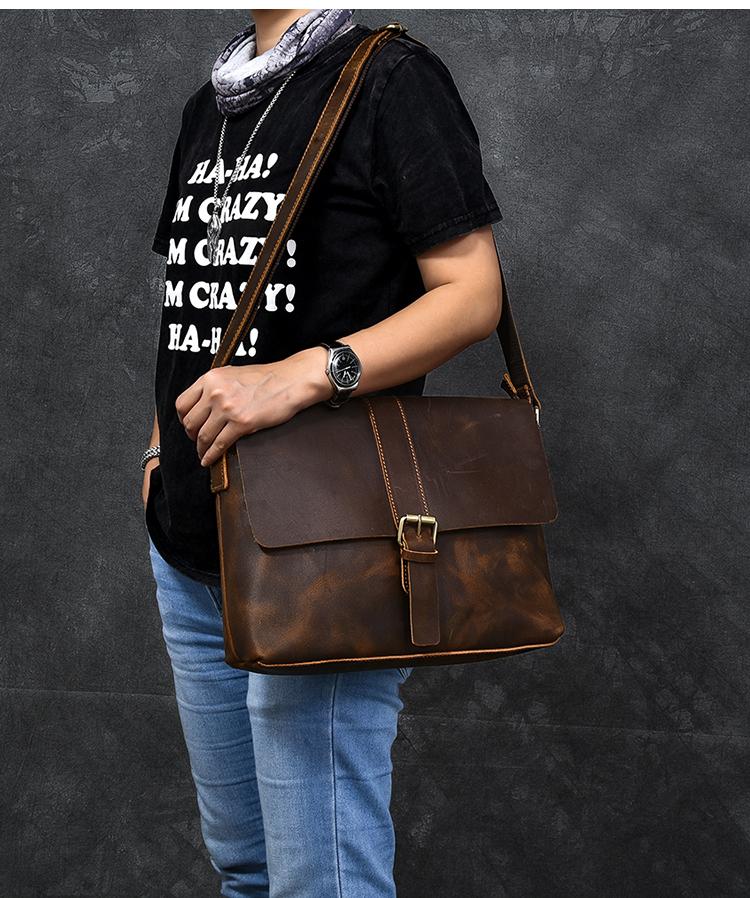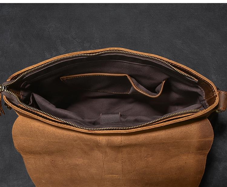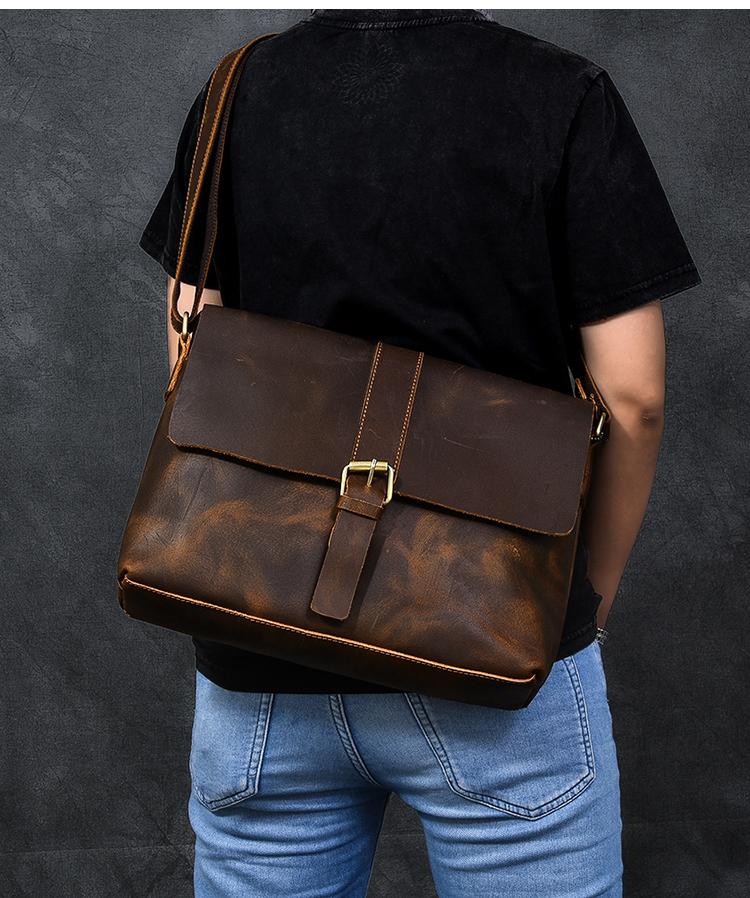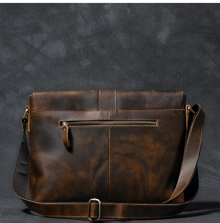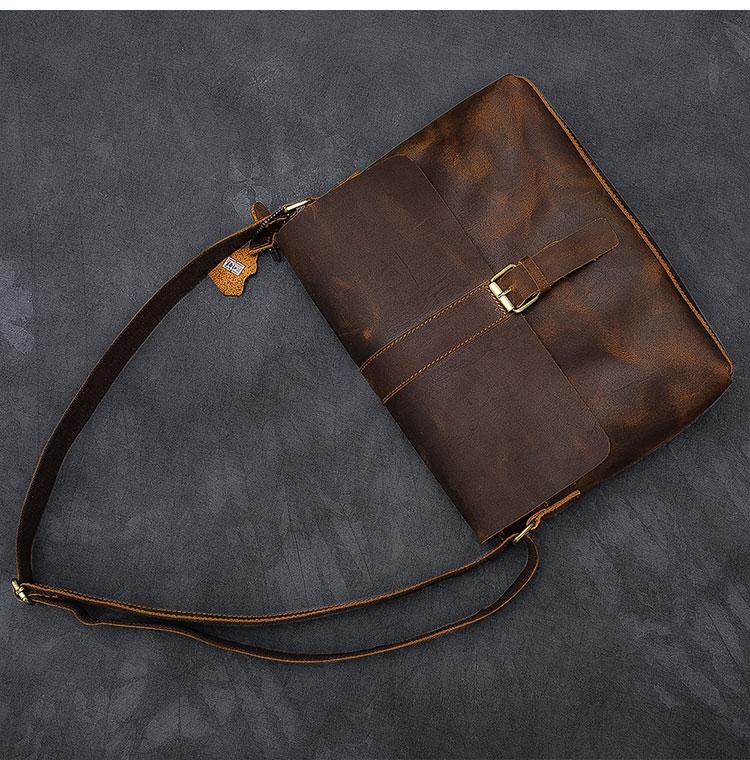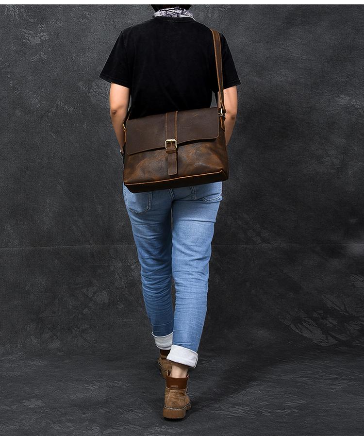 Design: Canvas Leather Mens 13‘’ Brown Side Bag Retro Messenger Bag Shoulder Bag For Men