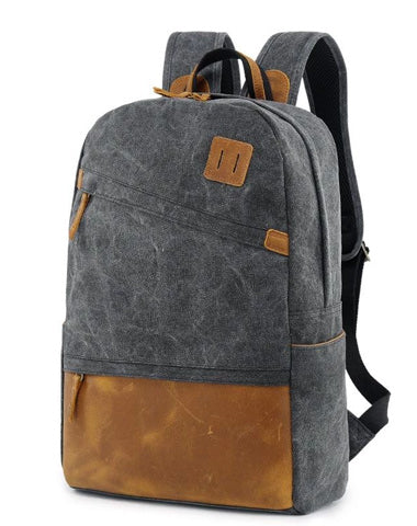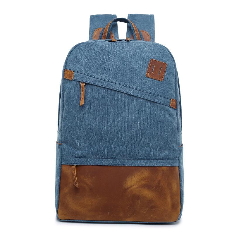 Design: Canvas Leather Mens 14" Black Computer Backpack Army Green Travel Backpack Blue College Backpack for Men