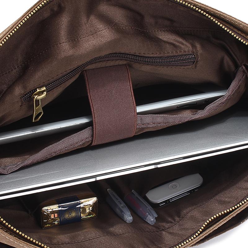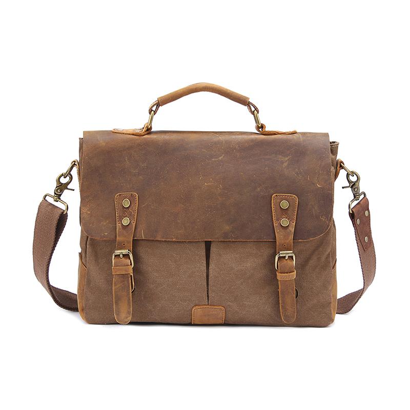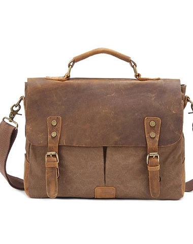 Style: Canvas Leather Mens 14" Simple Khaki Travel Side Bag Lake Green Messenger Bag Brown Shoulder Bag for Men