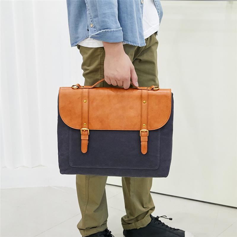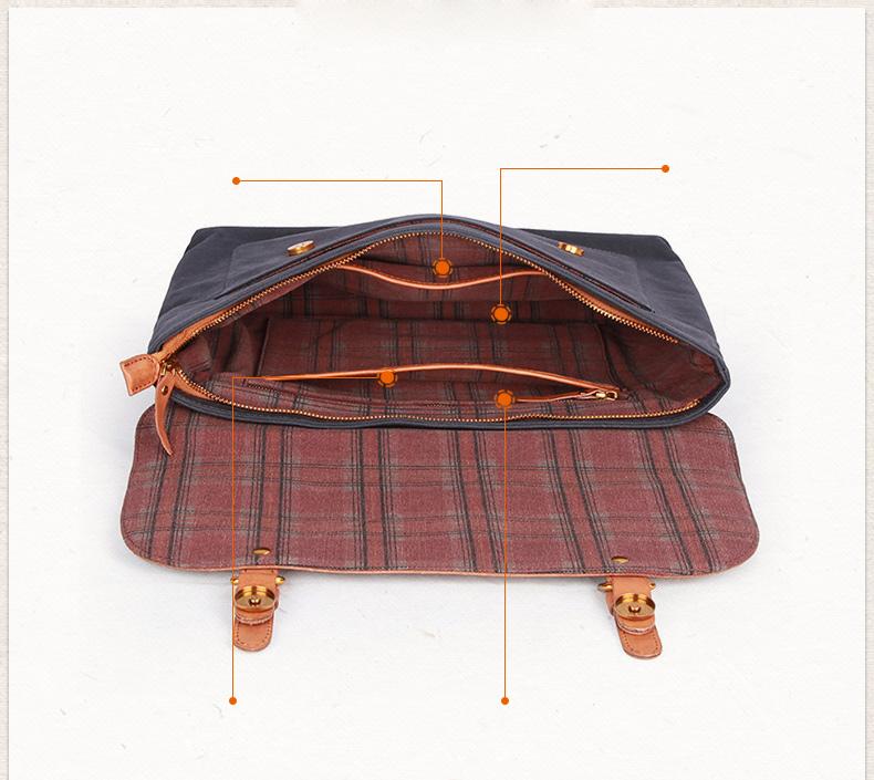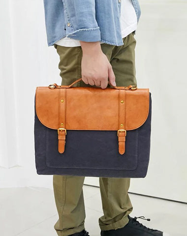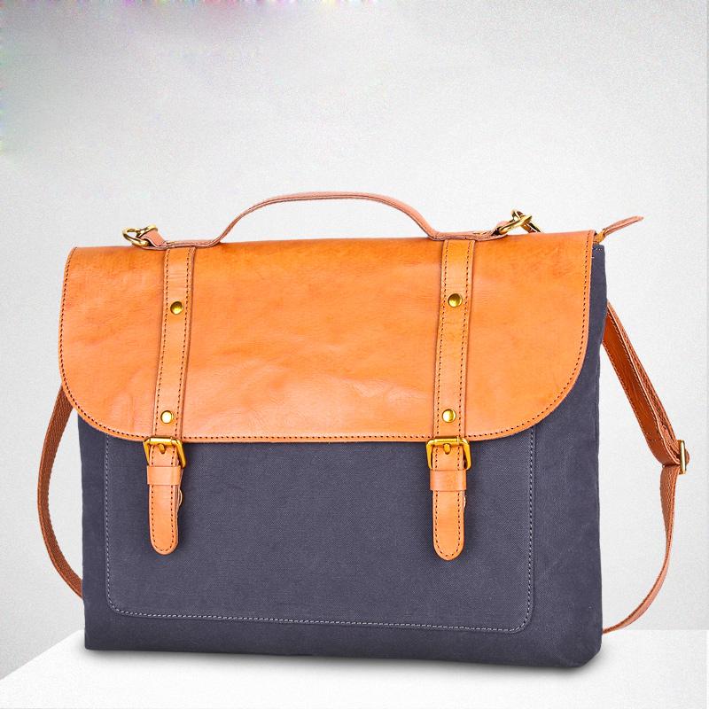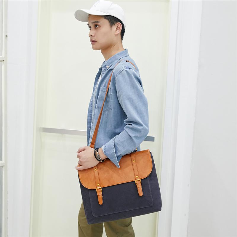 Design: Canvas Leather Mens 15" Brown Messenger Bag Shoulder Bag Army Green Diagonal Bag for Men