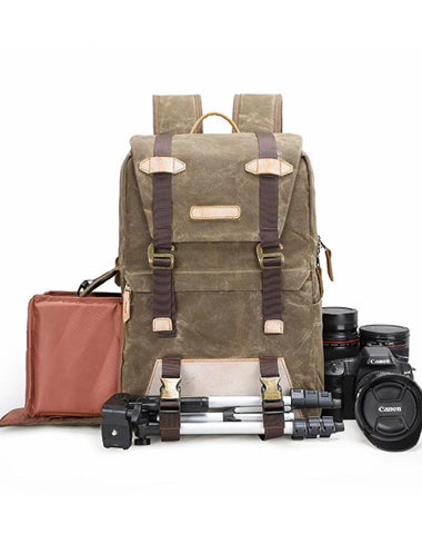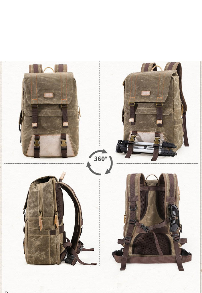 Style: Canvas Leather Mens 18" Waterproof Camera Backpack Army Green Travel Backpack Khaki College Backpack for Men