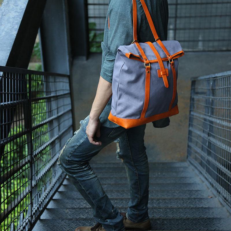 Style: Canvas Leather Mens Backpack Travel Backpacks Laptop Backpack for men