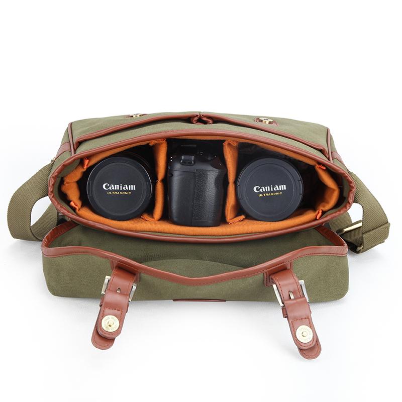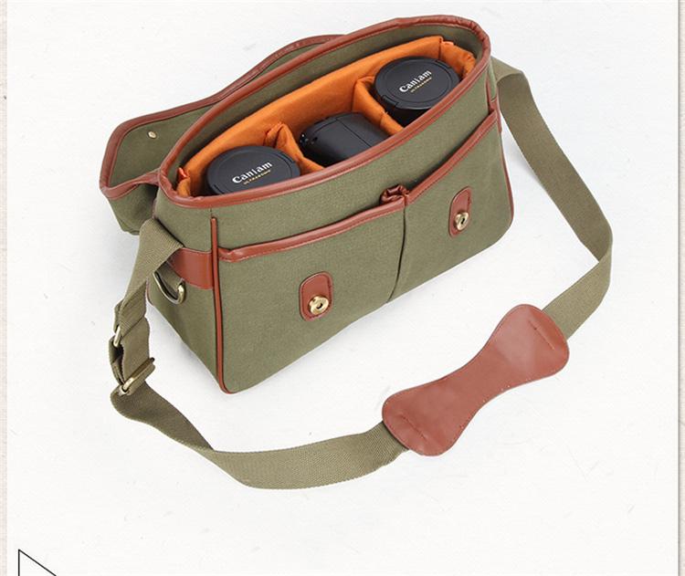 Design: Canvas Leather Mens Blue Camera Bag Shoulder Bag Army Green Diagonal Bag for Men