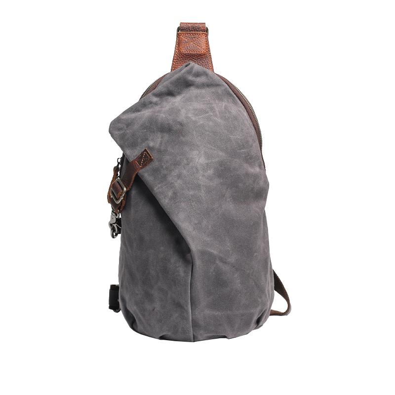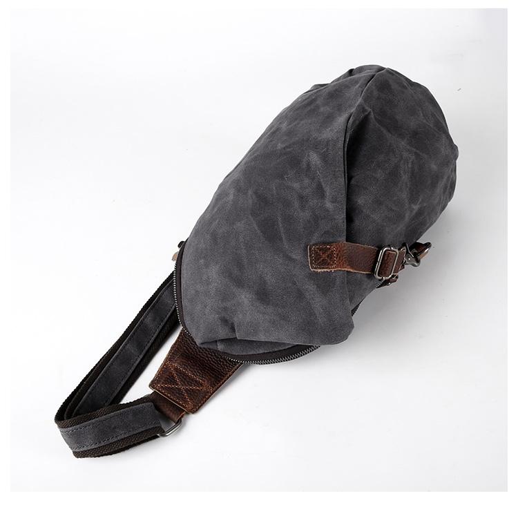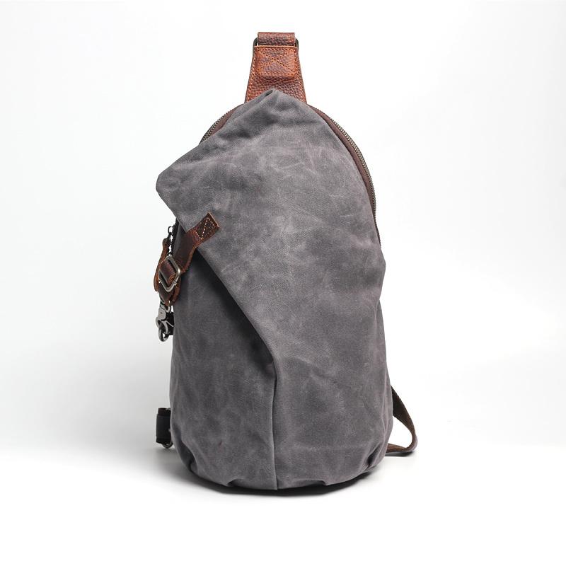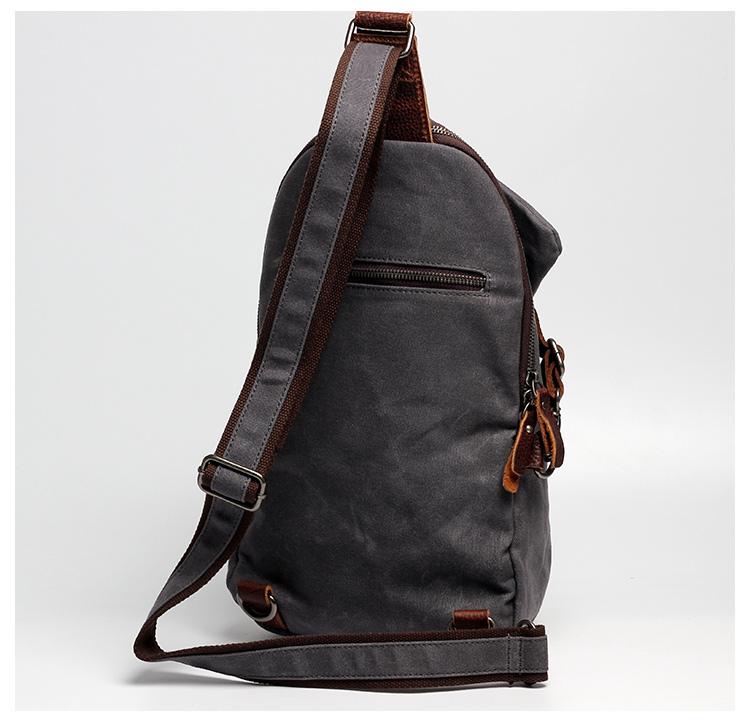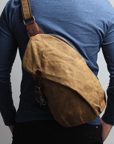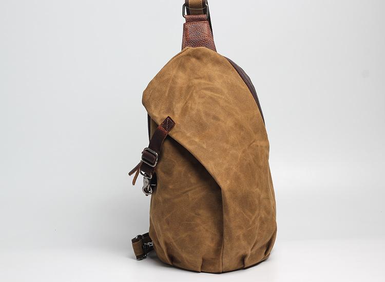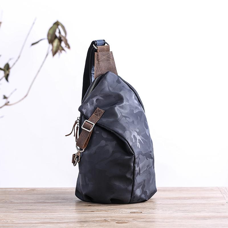 Style: Canvas Leather Mens Camouflage Chest Bag One Shoulder Backpack Khaki Sling Bag for Men