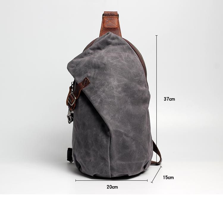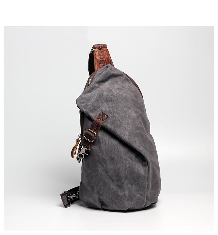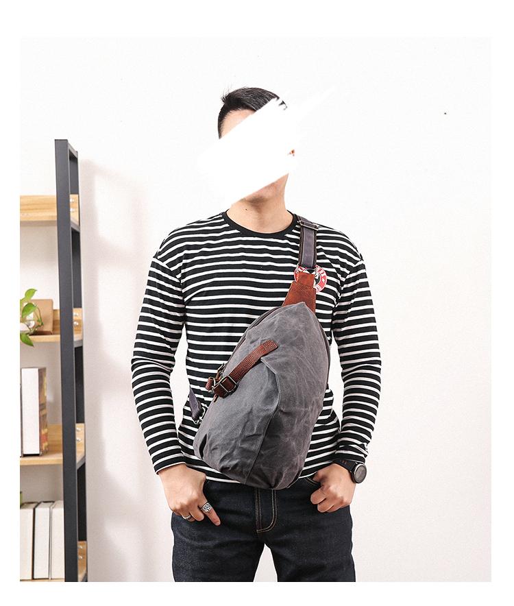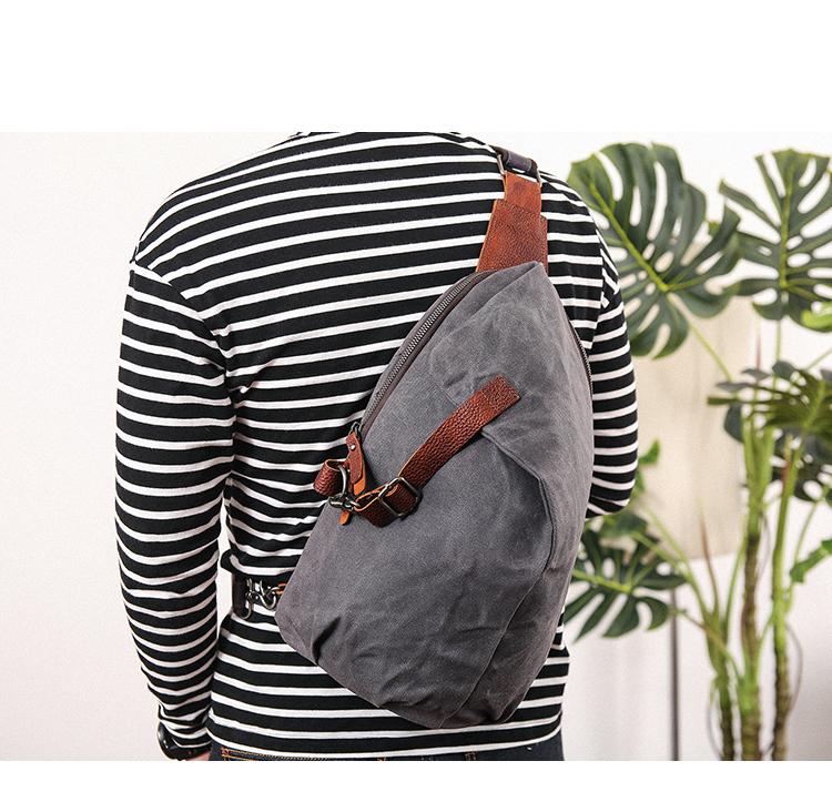 Design: Canvas Leather Mens Camouflage Chest Bag One Shoulder Backpack Khaki Sling Bag for Men