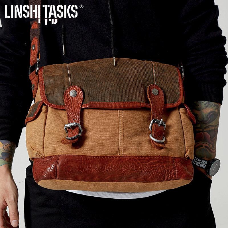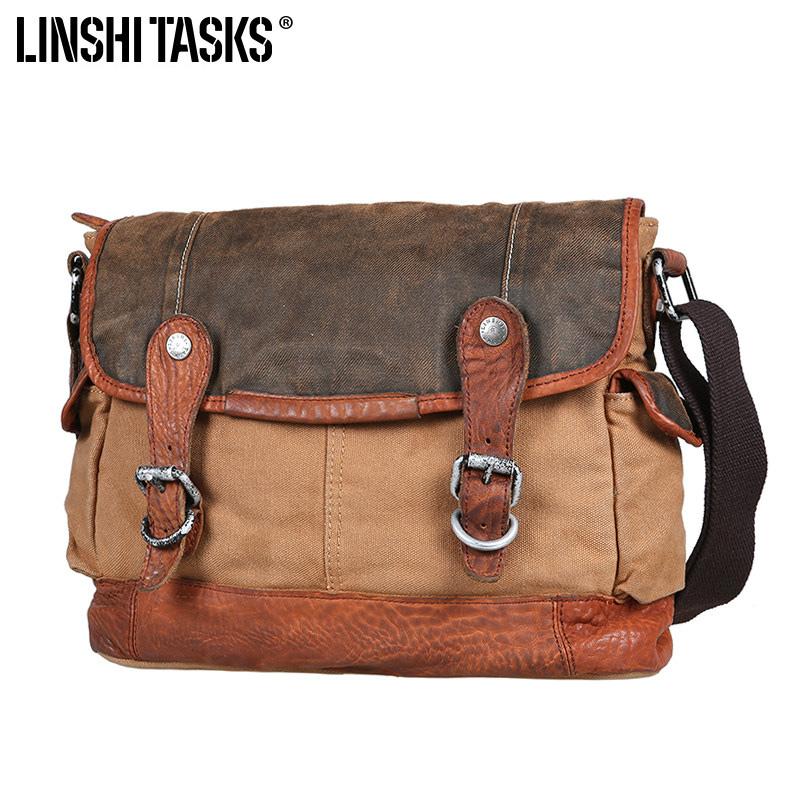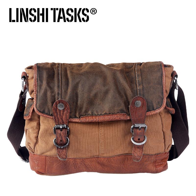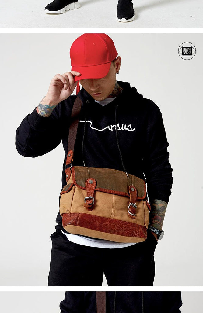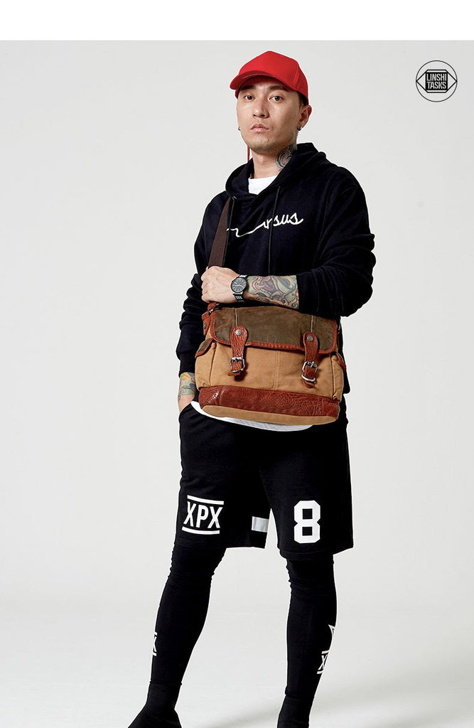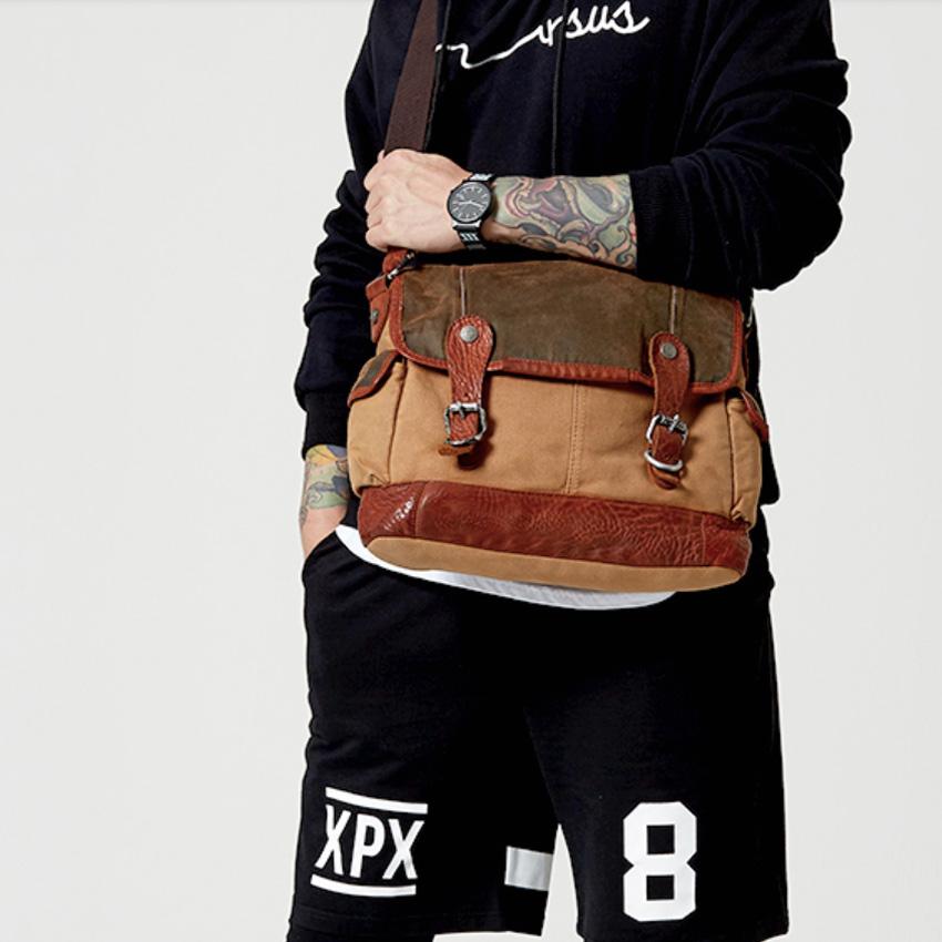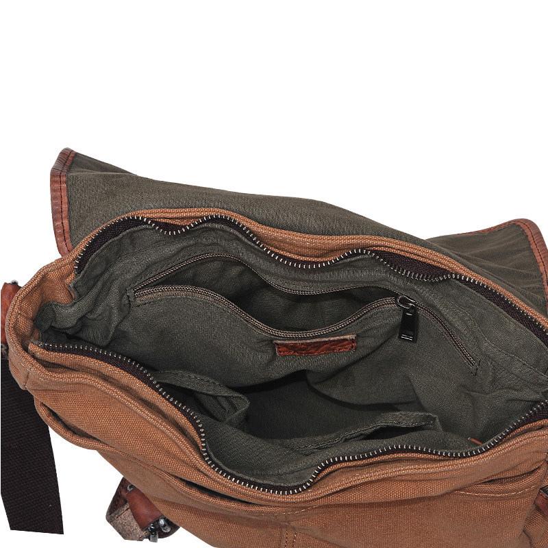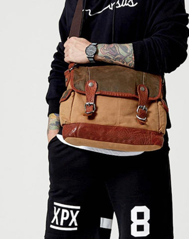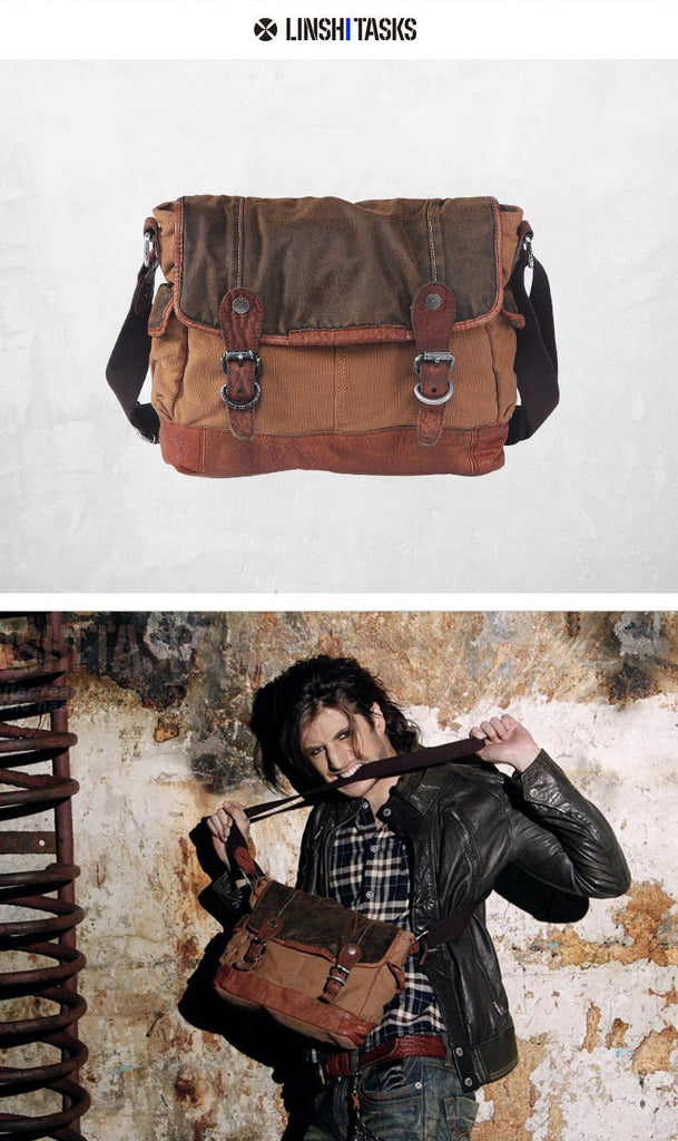 Design: Canvas Leather Mens Coffee Shoulder Bag Messenger Bag Canvas Courier Bag for Men
