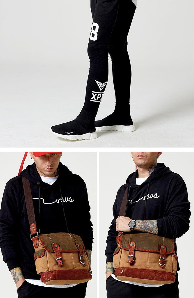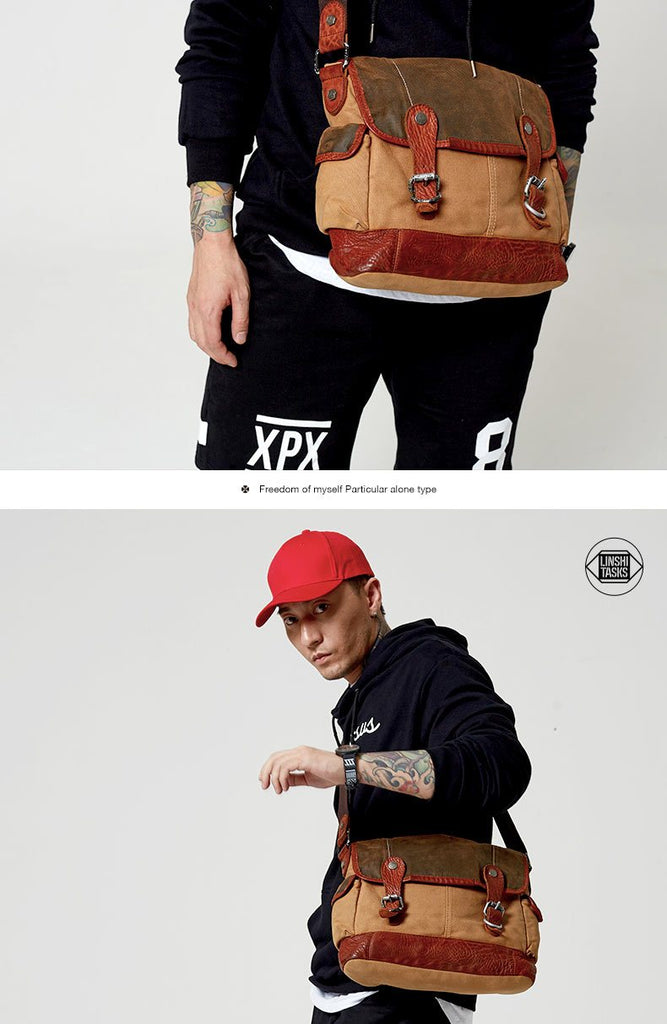 Style: Canvas Leather Mens Coffee Shoulder Bag Messenger Bag Canvas Courier Bag for Men