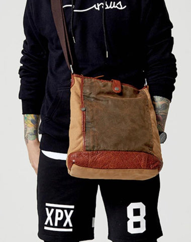 Style: Canvas Leather Mens Distressed Brown Shoulder Bag Messenger Bag Canvas Courier Bag for Men